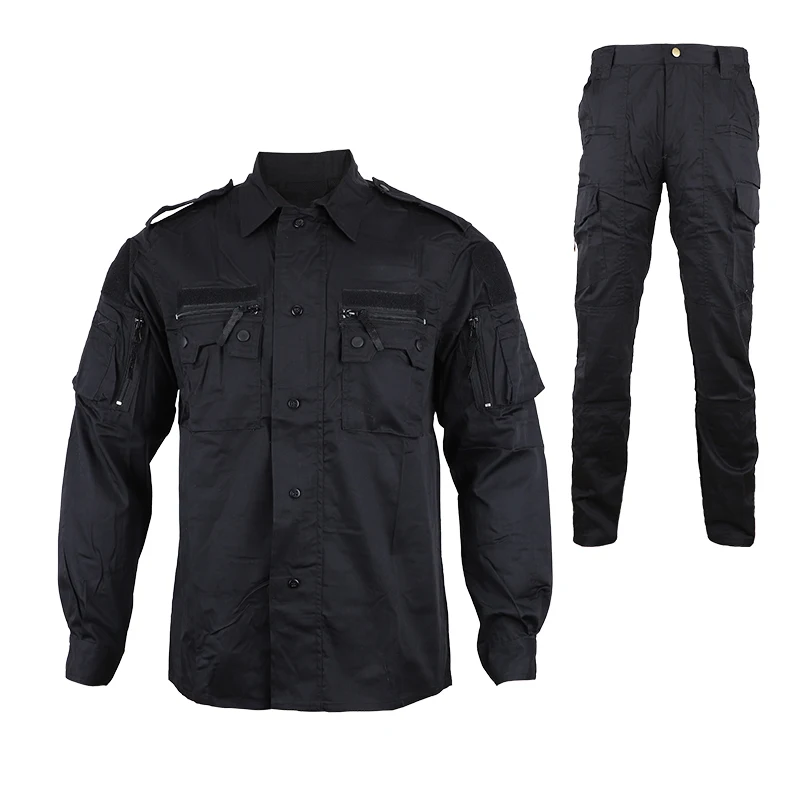 Características: el uniforme para hombres tiene muchos bolsillos para revistas de repuesto, cuchillos, bolígrafos, llaves de esposas y más. El traje táctico cuenta con puños ajustables con botones y bolsillos de inserción de coderas para relleno opcional. La chaqueta y los pantalones están hechos de tela extremadamente resistente, retráctil y resistente a las arrugas, fitness, transpiración de la humedad, transpirable, extremadamente duradero y de secado rápido, te mantiene seco y cómodo.