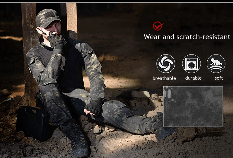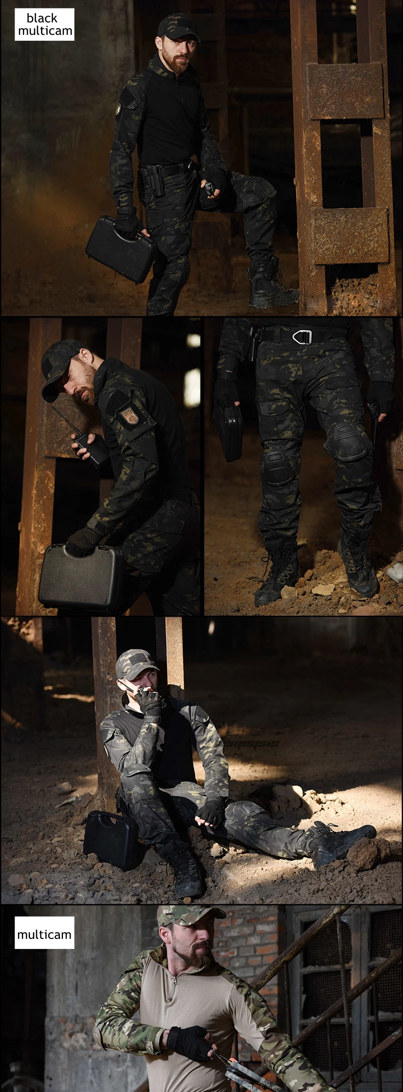 Uniforme táctico Outdoot, camisas de camuflaje de combate o pantalones Cargo con coderas, rodilleras, trajes, ropa de juego Airsoft Paintball Cs