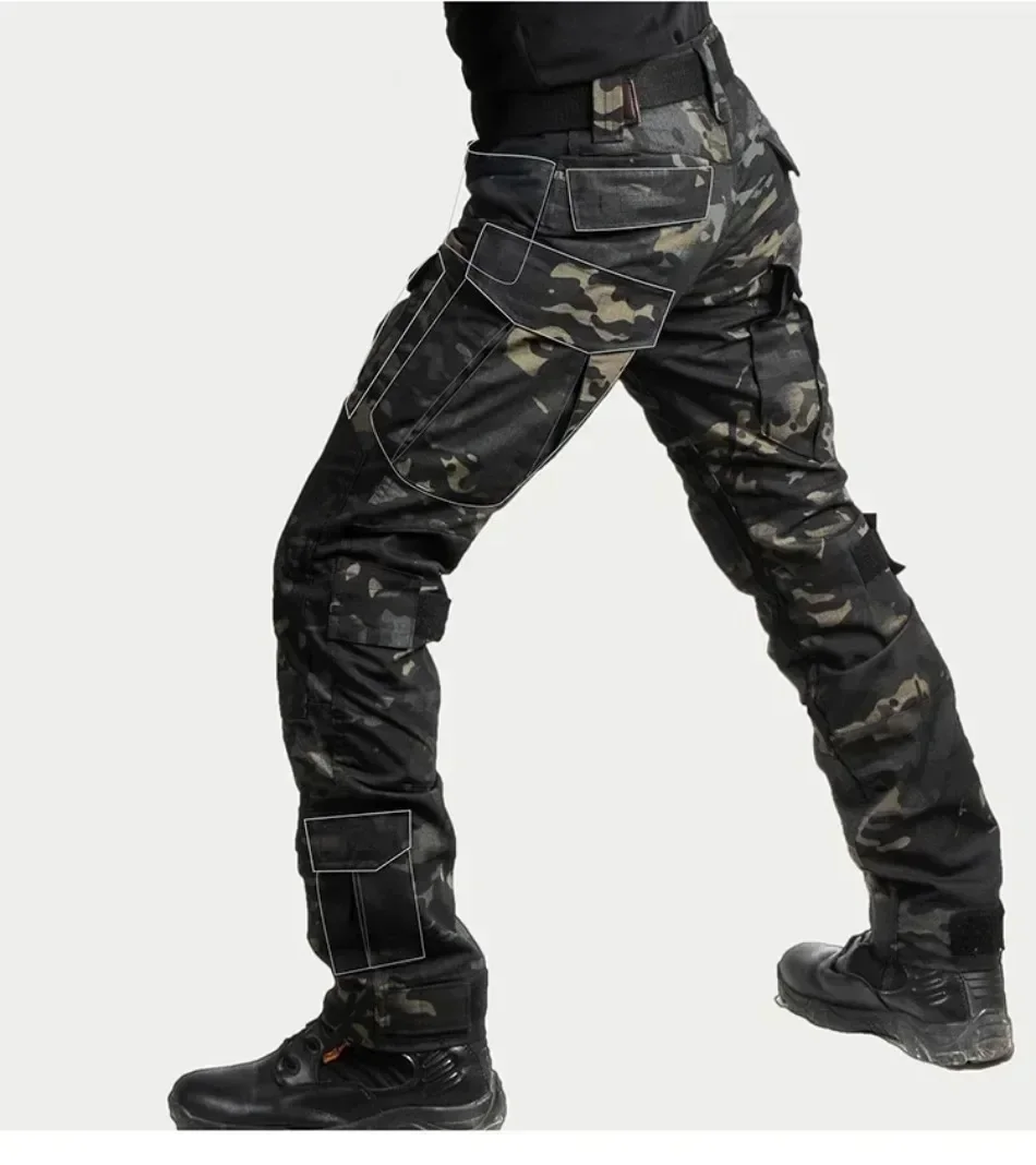 Conjunto de entrenamiento de camuflaje negro para hombre, Tops de combate con media cremallera, traje táctico impermeable, elástico, múltiples bolsillos, secado rápido, 3 uds.