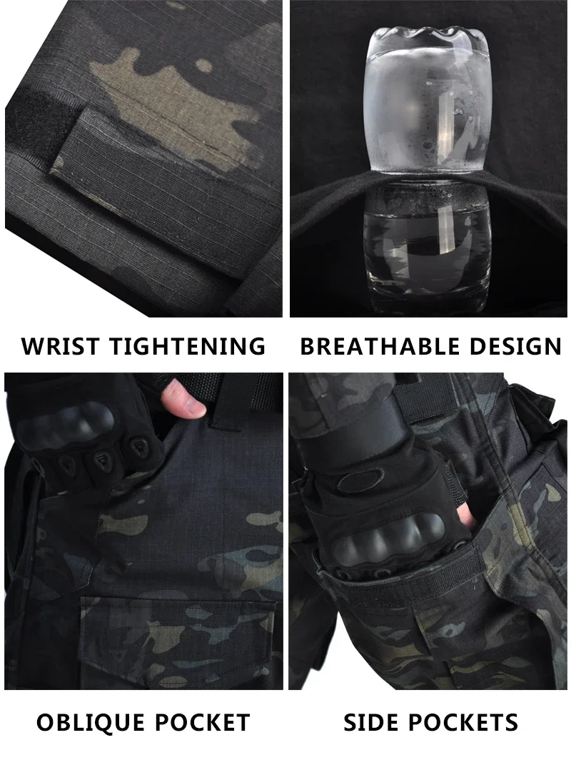Uniforme táctico, trajes de combate, pantalones de camuflaje para exteriores para hombres, camisas de caza, entrenamiento, ropa de Paintball Airsoft, conjuntos de acampada