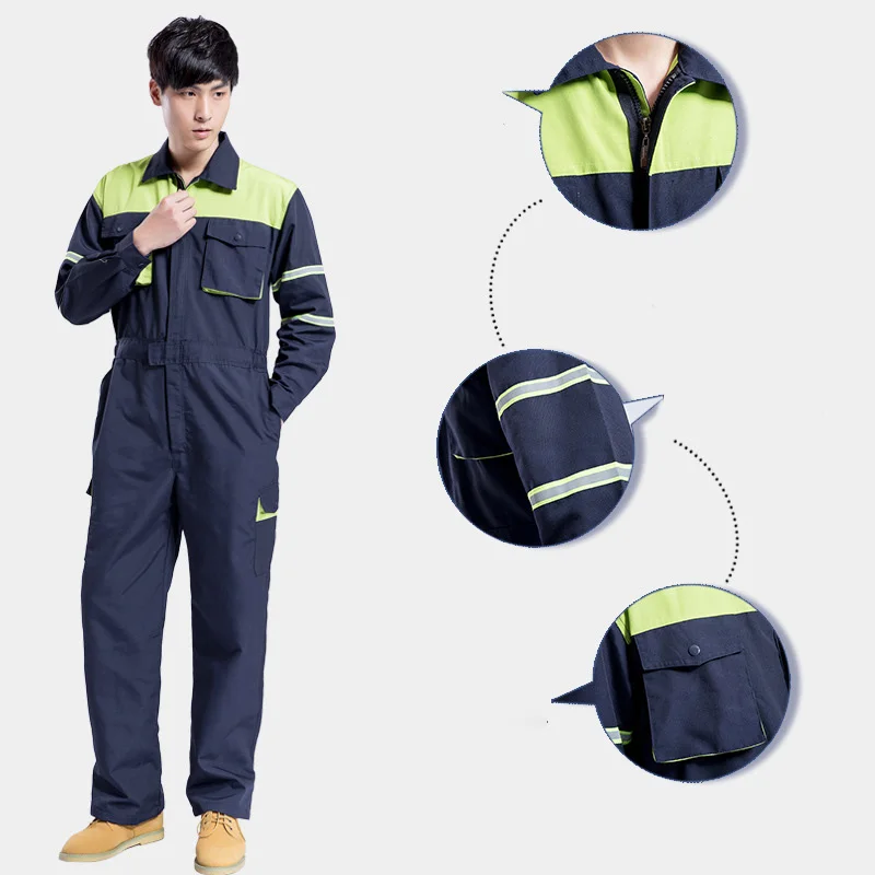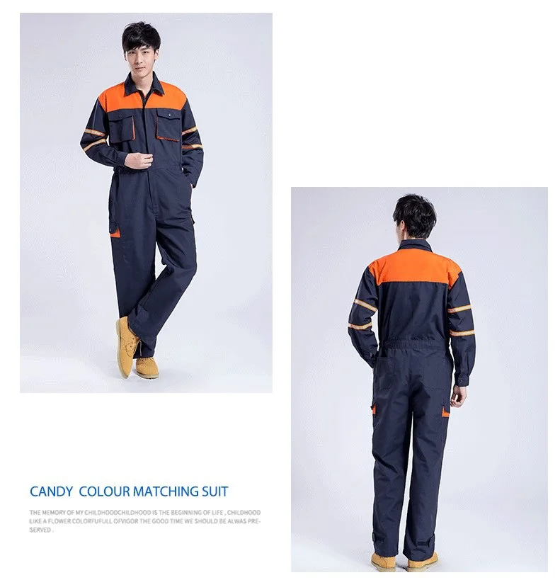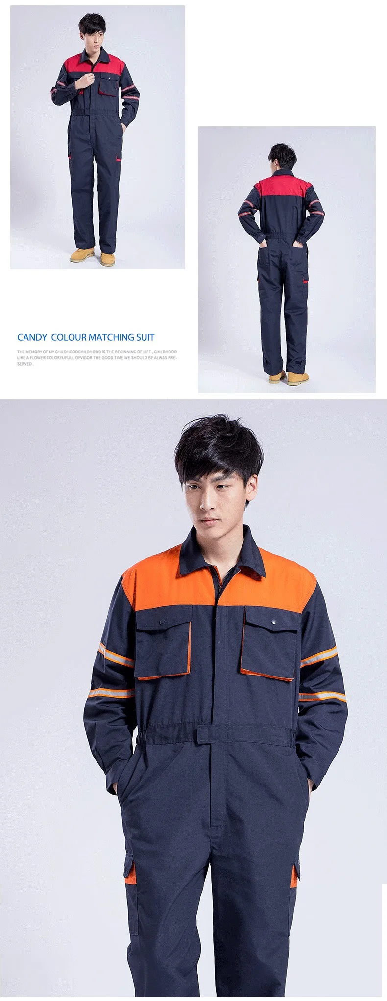 Ropa de trabajo antiincrustante para hombre y mujer, taller reflectante de reparación de máquina, uniforme general resistente al desgaste, primavera y otoño 2020Uniformes de taller de fábrica Servicio de reparación Ropa de trabajo Mangas largas Ropa de ingeniería siamesa Monos de maquinaria de trabajo