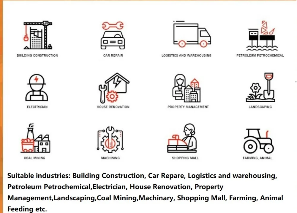 Industrias adecuadas: construcción de edificios, reparación de automóviles, logística y almacenamiento, petróleo petroquímico, electricista, renovación de viviendas, gestión de propiedades, paisajismo, minería de carbón, maquinaria, centro comercial, agricultura, alimentación de animales, etc.