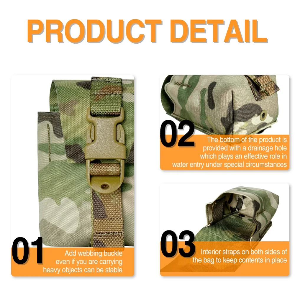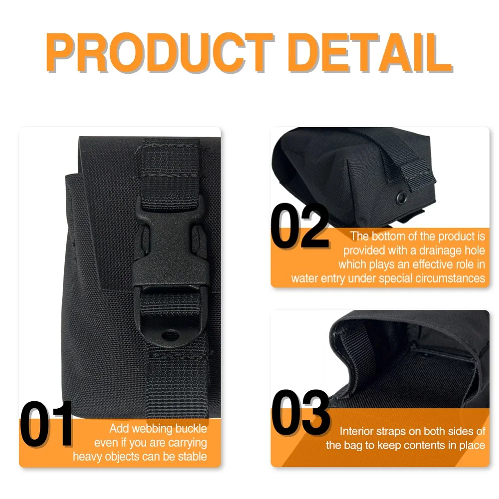 【Material duradero】La bolsa de granada individual está hecha de material de nailon 500D.Tiene una excelente resistencia al desgaste y durabilidad y puede soportar un uso intensivo en el entorno táctico.