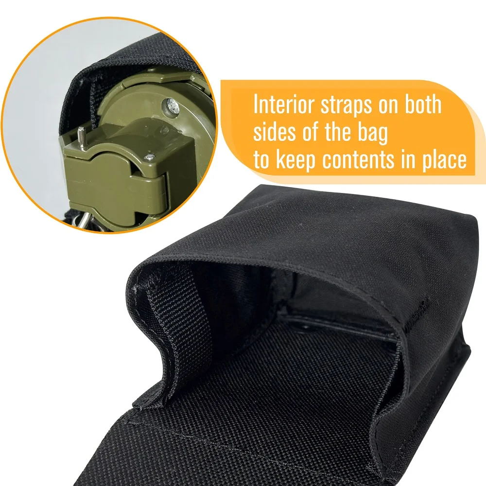 【Producción de alta calidad】 hecha de nailon, esta bolsa para granadas tiene una excelente resistencia al agua y al desgarro, y puede proteger su equipo en diversos entornos hostiles.