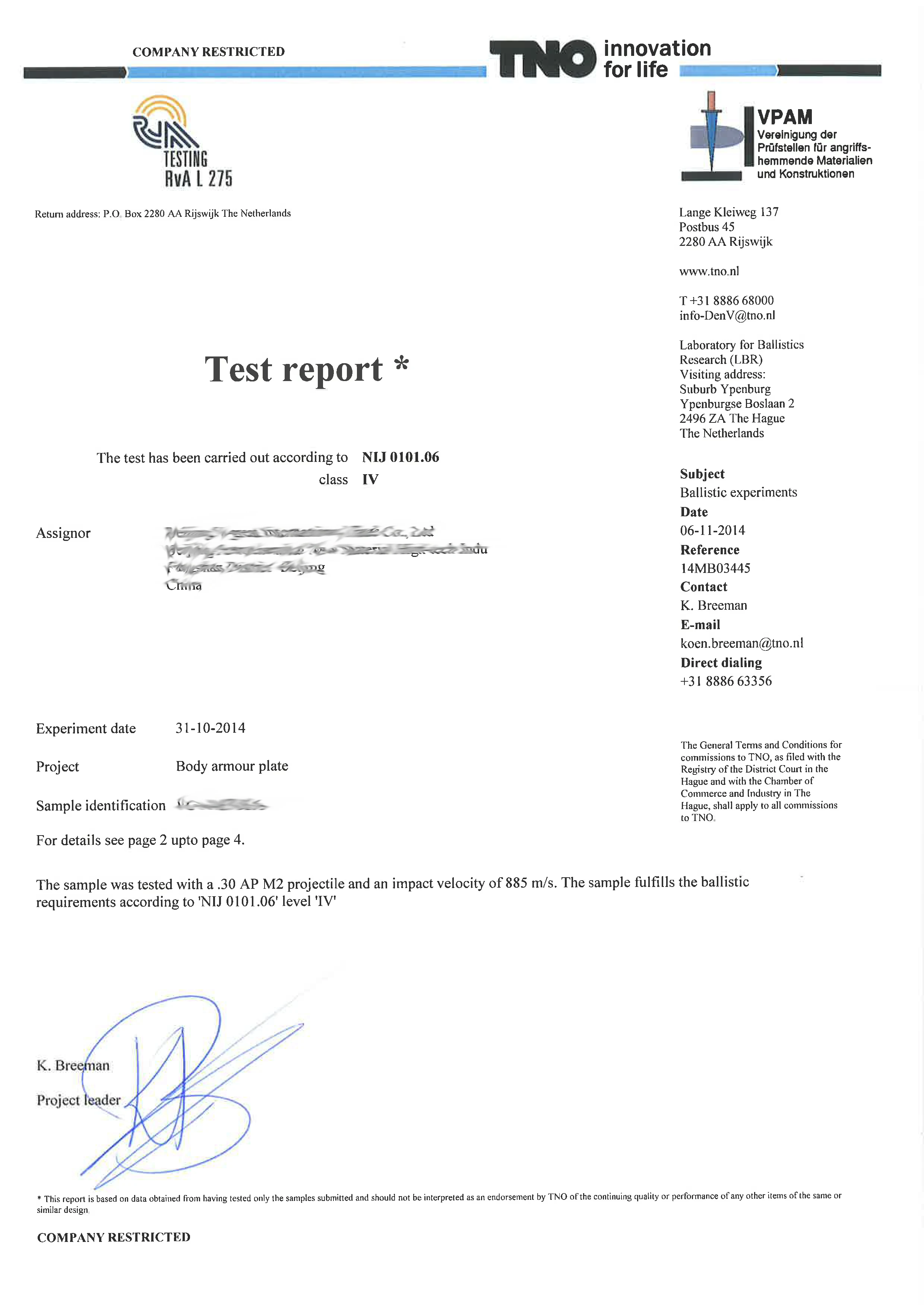 Tipo de armadura: Oxido de aluminio (también AL2O3) Armadura compuesta de cerámica y PE
