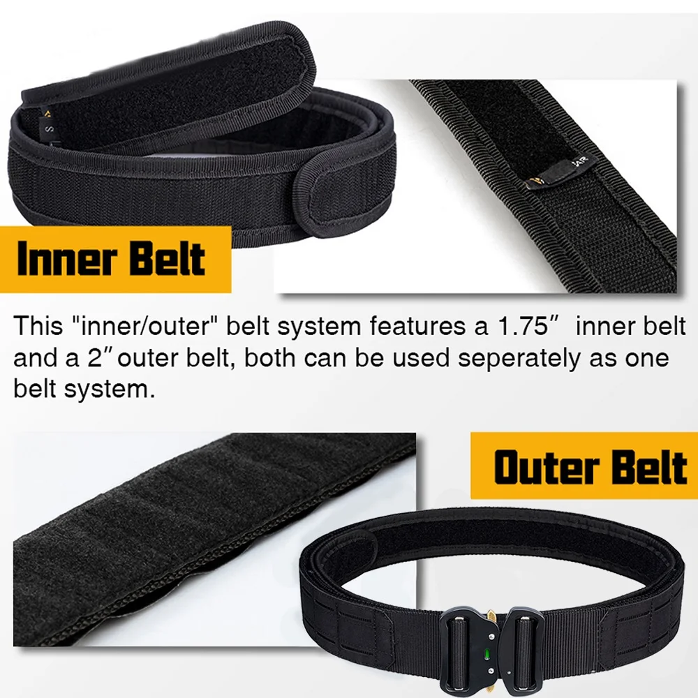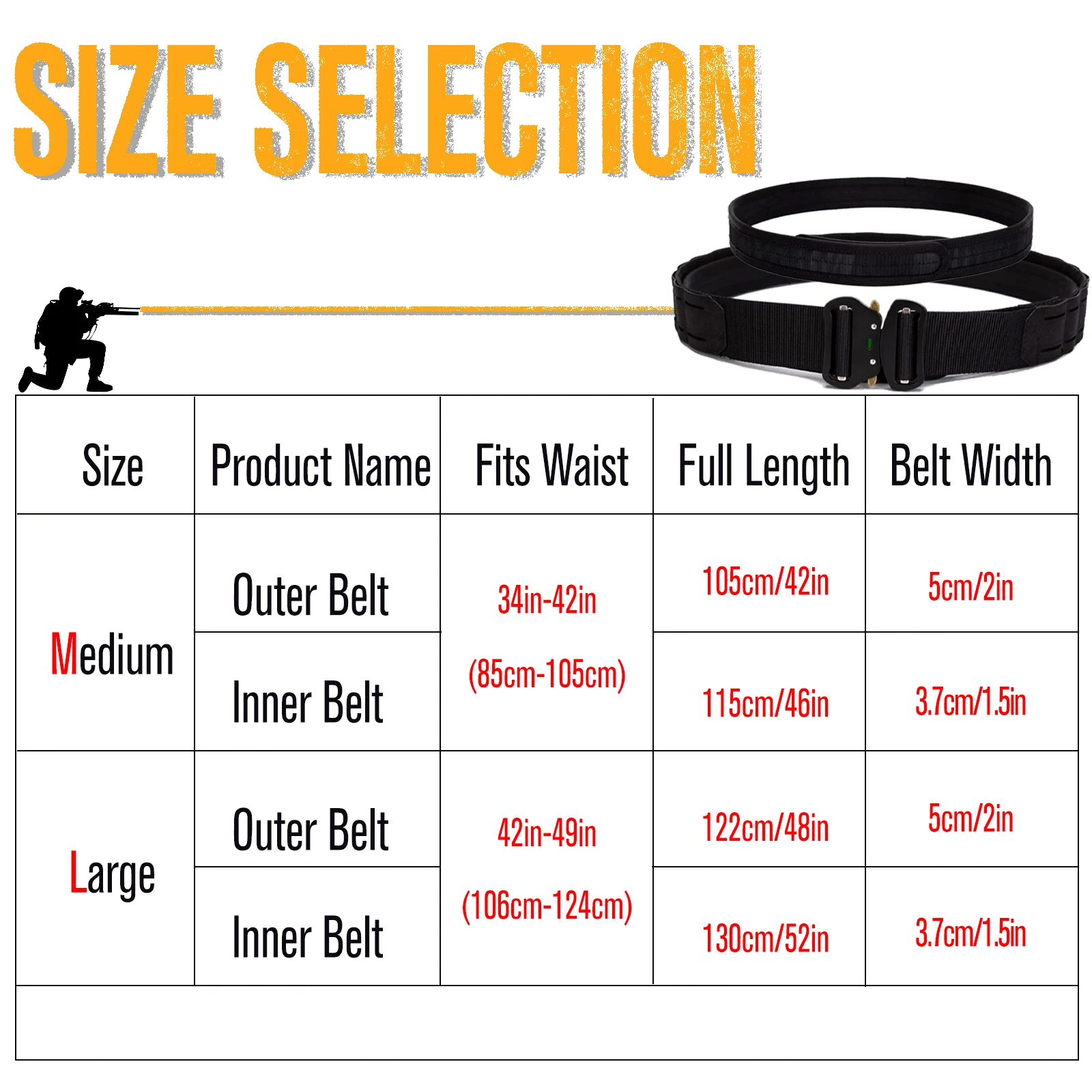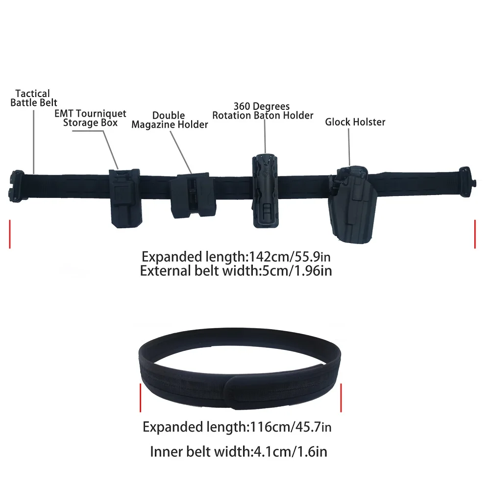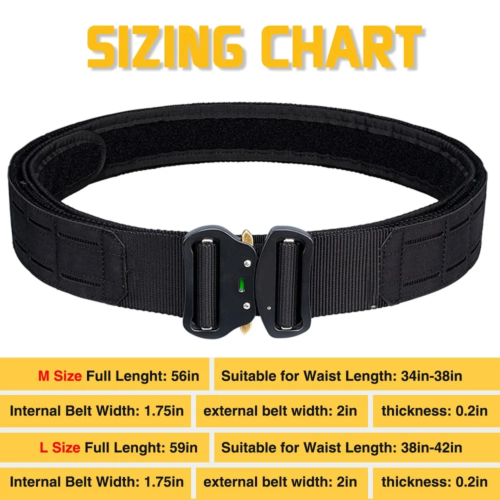 【Especificaciones】Material principal: nailon 1000D.Este cinturón tiene un cinturón interior y un cinturón exterior.[Especificaciones del cinturón táctico] Tamaño del cinturón táctico (fácilmente ajustable): Talla M [longitud total 56" ] / Talla L [longitud total 60" ] / peso: aproximadamente 400 g / ancho del cinturón: aproximadamente 1,75 "/grosor del cinturón: aproximadamente 0,2".