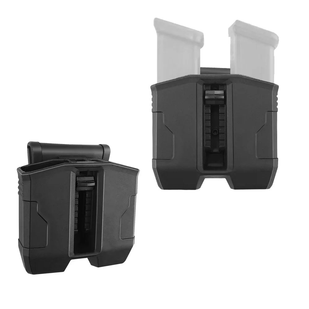 【Soporte de doble imán】Proporciona una excelente protección del cargador. Innovadora retención del cargador ajustable manualmente. Permite una acción de extracción rápida para un rendimiento óptimo. La paleta presenta una opción de ajuste seguro de 35 grados. Revistas adaptables.