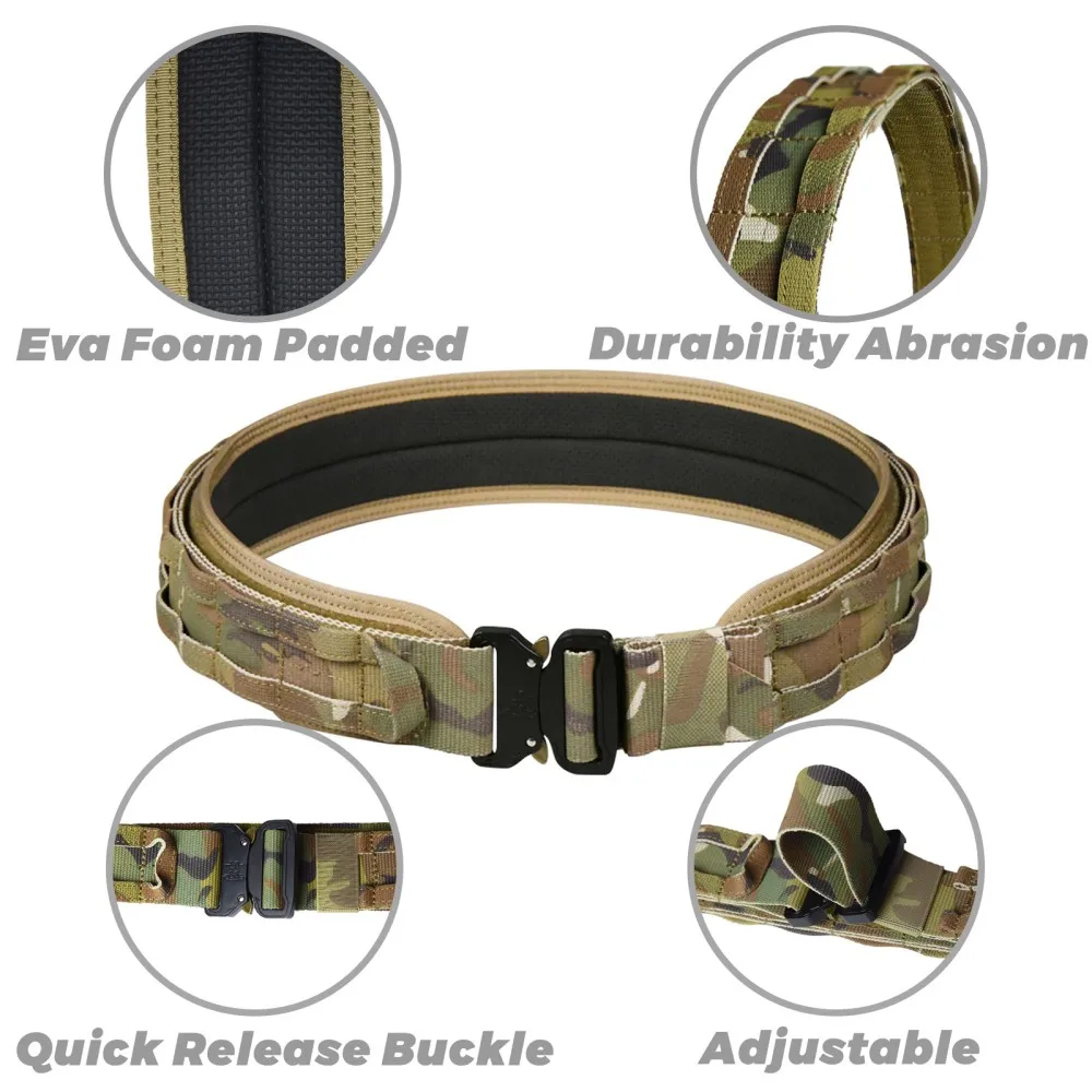 Ajuste ajustado:El equipo Hook and Loop Fastener garantiza un ajuste ceñido y seguro, lo que permite un ajuste rápido y fácil según sea necesario. El cinturón interior acolchado de EVA ofrece comodidad y soporte adicionales, reduciendo los puntos de presión y la fatiga durante el uso prolongado. Este diseño de múltiples capas proporciona versatilidad, durabilidad y estabilidad, lo que lo hace adecuado para diversas actividades tácticas y al aire libre donde la confiabilidad y la funcionalidad son esenciales.