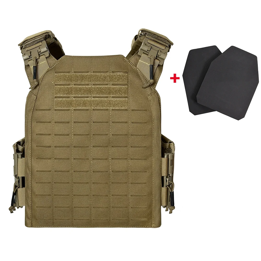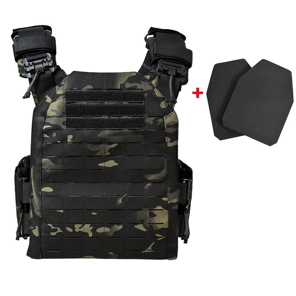 El juego de placas ficticias está hecho de una forma EVA liviana, por lo que es tan liviano que no supere el peso y puede formar el chaleco táctico que tiene la forma óptima sin carga.