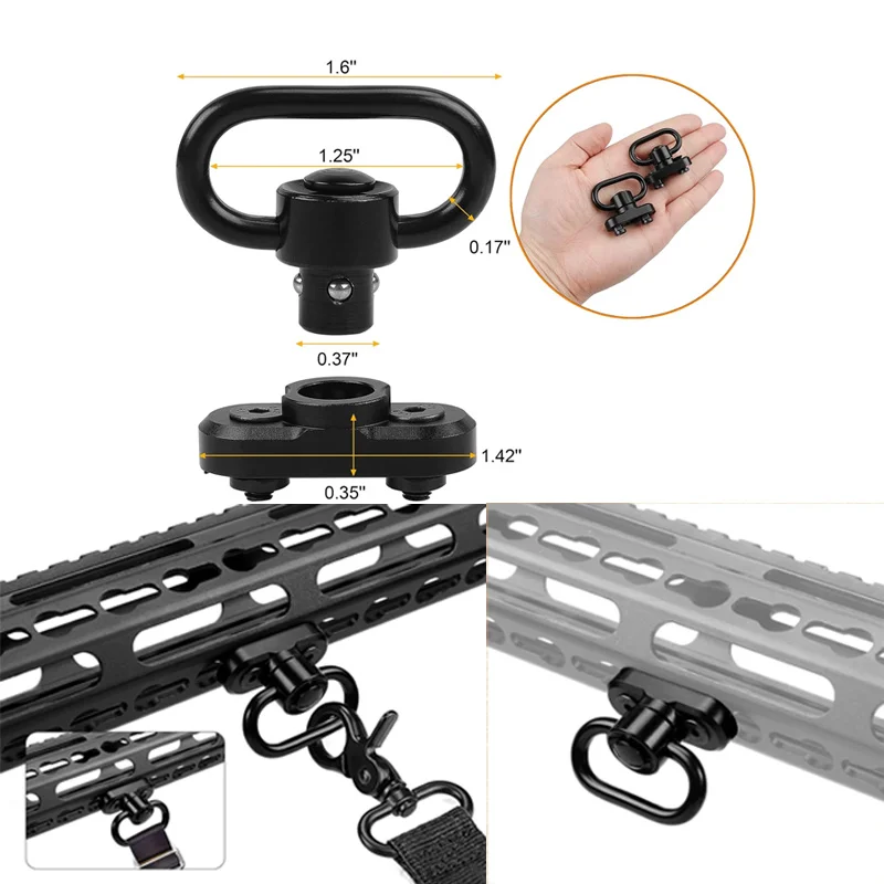 Universal 2 uds soportes de eslinga de dos puntos giratorios, accesorio de desconexión rápida de 1,25”, 360° ,Caza táctica,Accesorios para armas de juguete