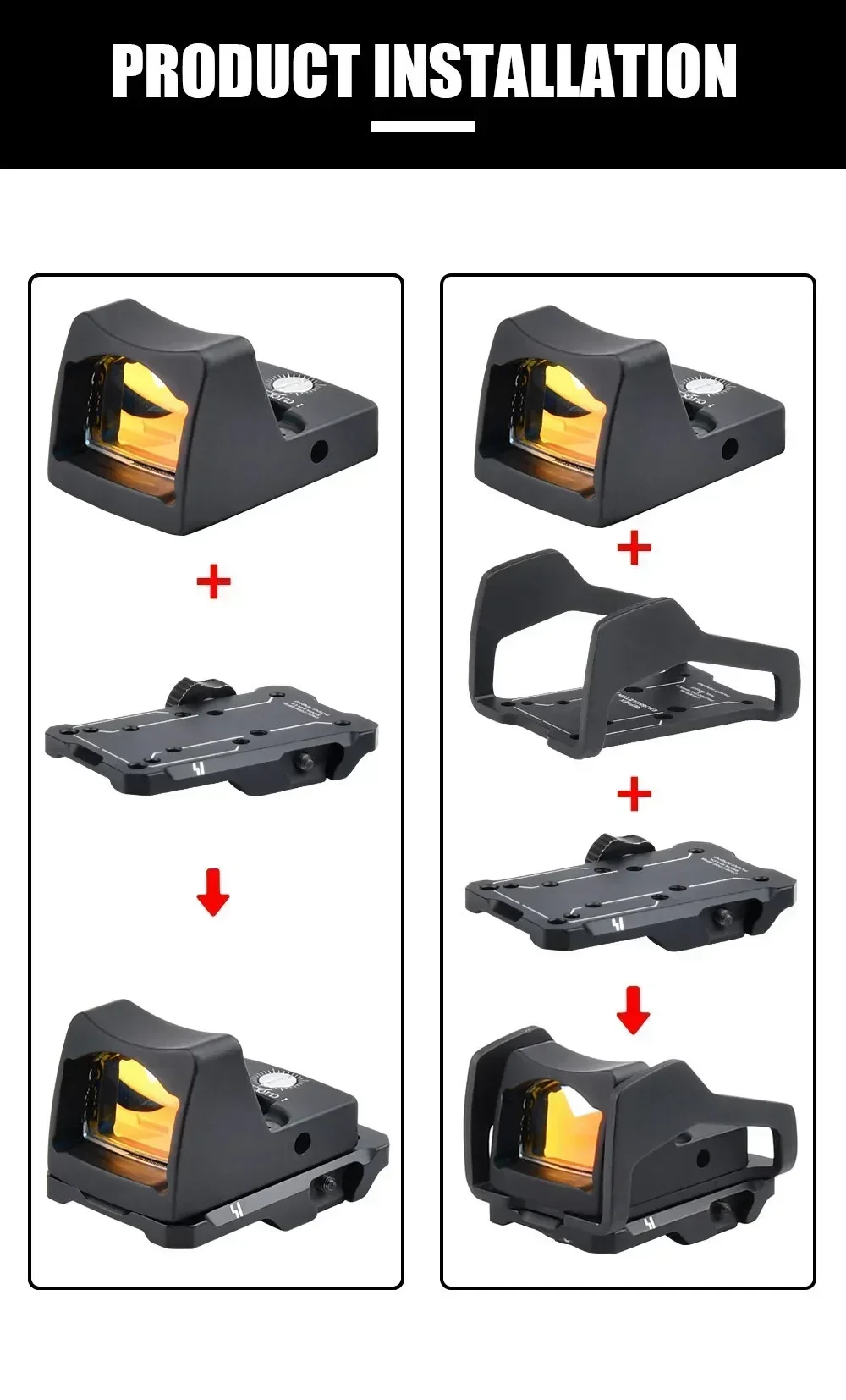 Opciones de montaje multiusos para la mayoría de los rieles picatinny o ópticas montadas con deslizamiento en pistolas.