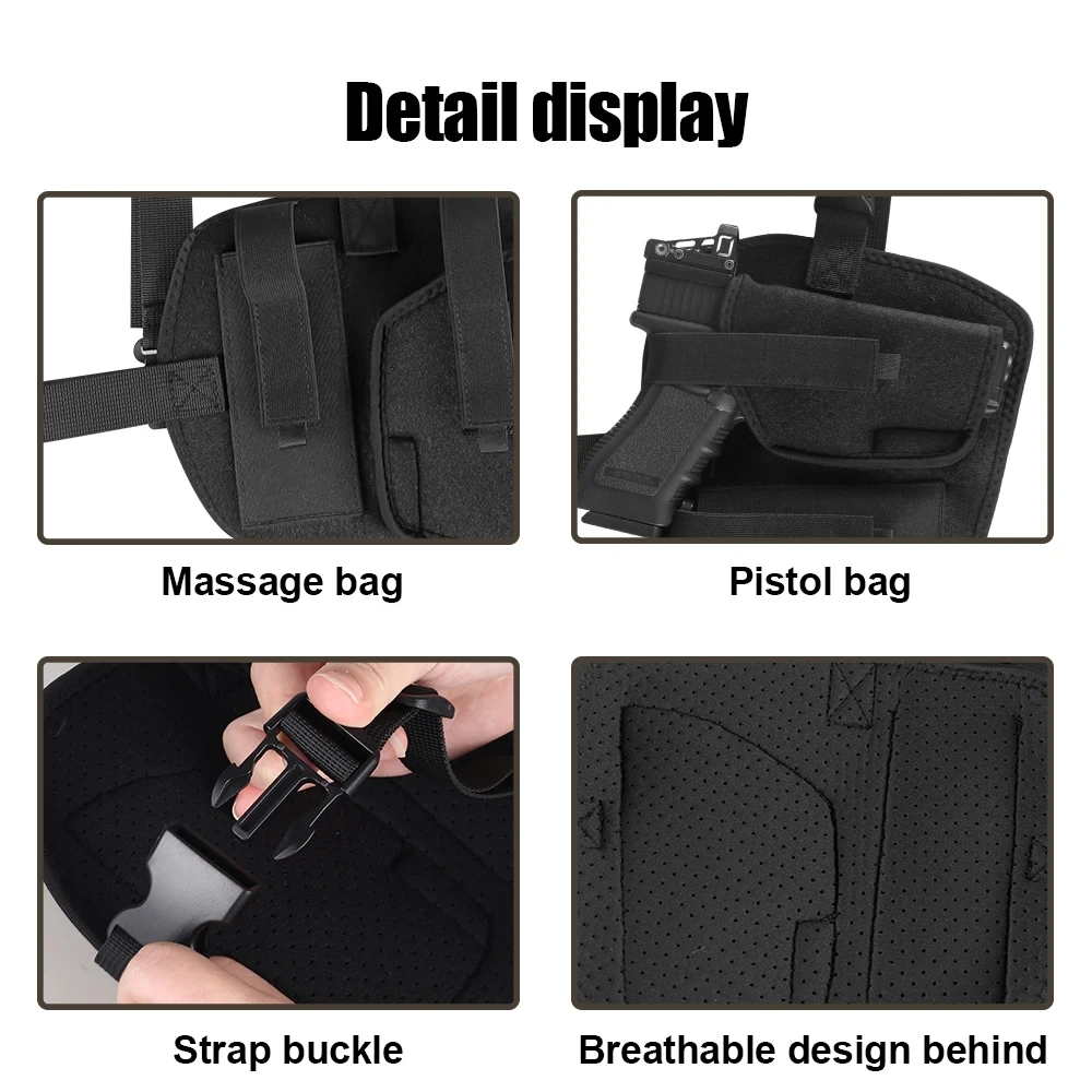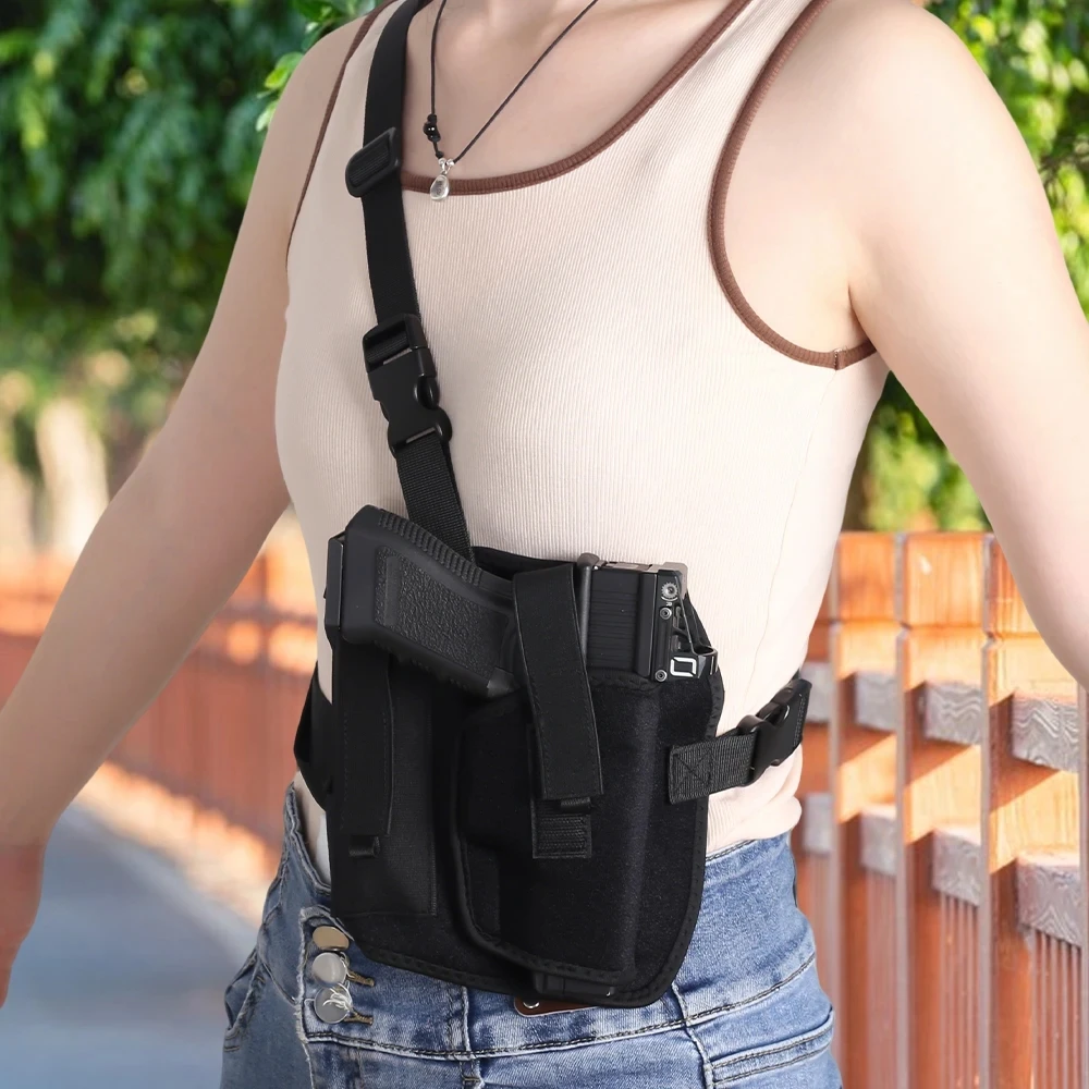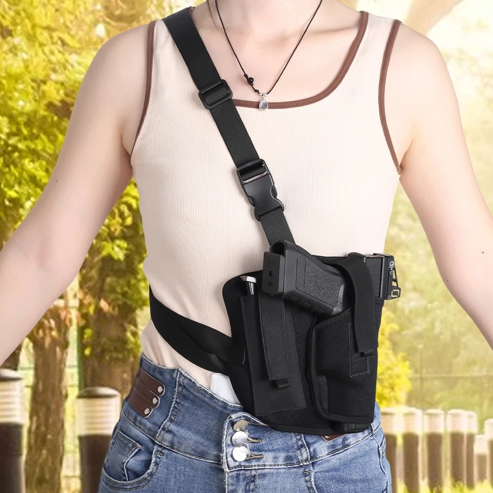 De zachte en comfortabele schouderholster van neopreen is verstelbaar en rekt uit, zodat hij geschikt is voor een borst tot 45 inch.Geweldig voor mannen en vrouwen.