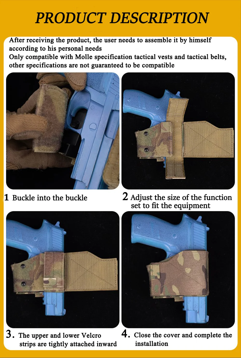 ※ Este artículo se puede utilizar con varios equipos MOLLE, como cinturones de batalla y soportes de placas.