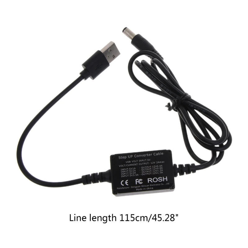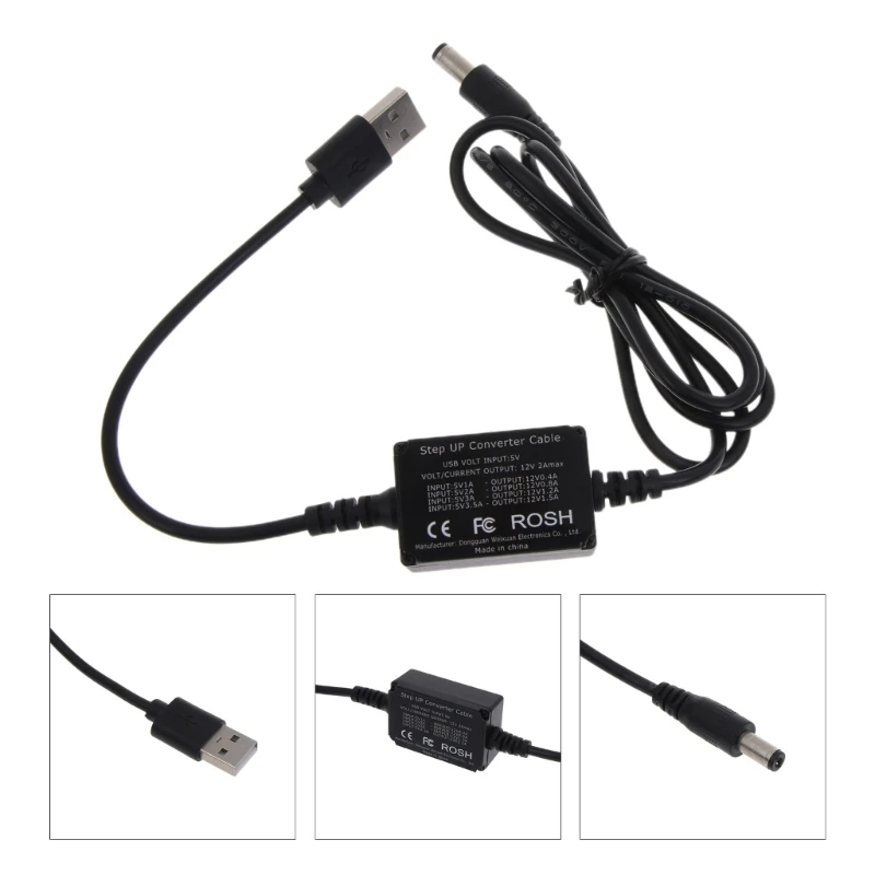 Características:Línea de refuerzo de enrutadores USB a DC5.5x2.1mm, amplificador de 5V a cable de carga de 12V.