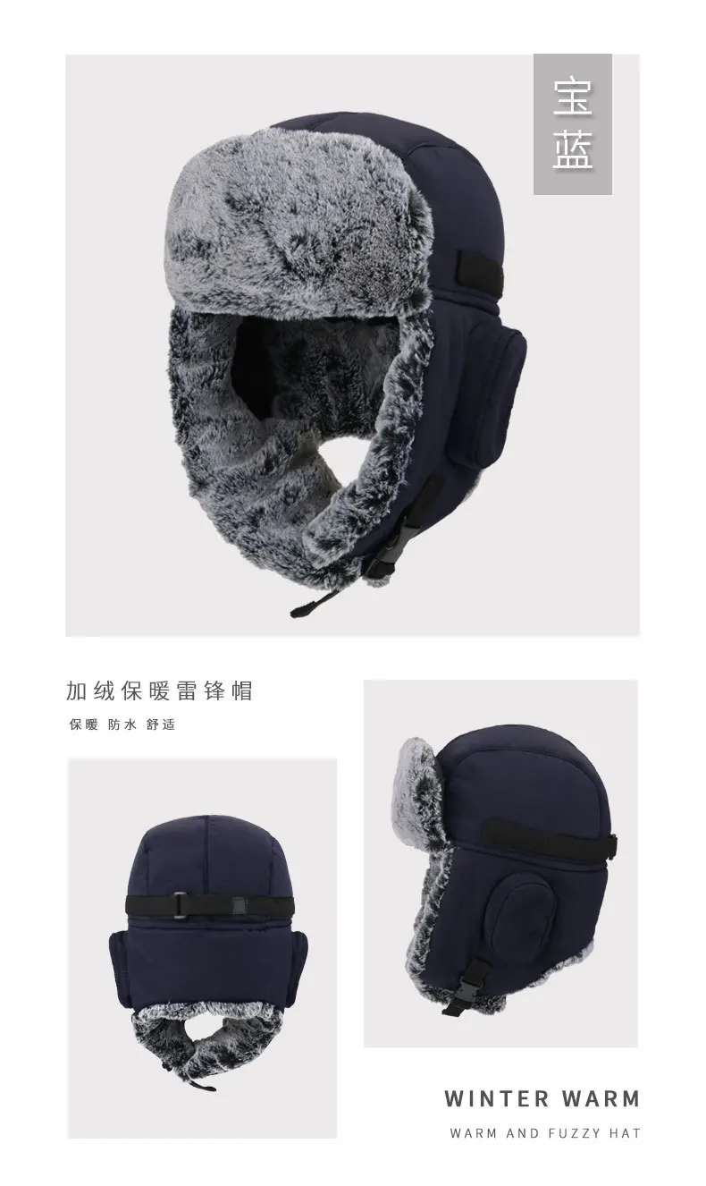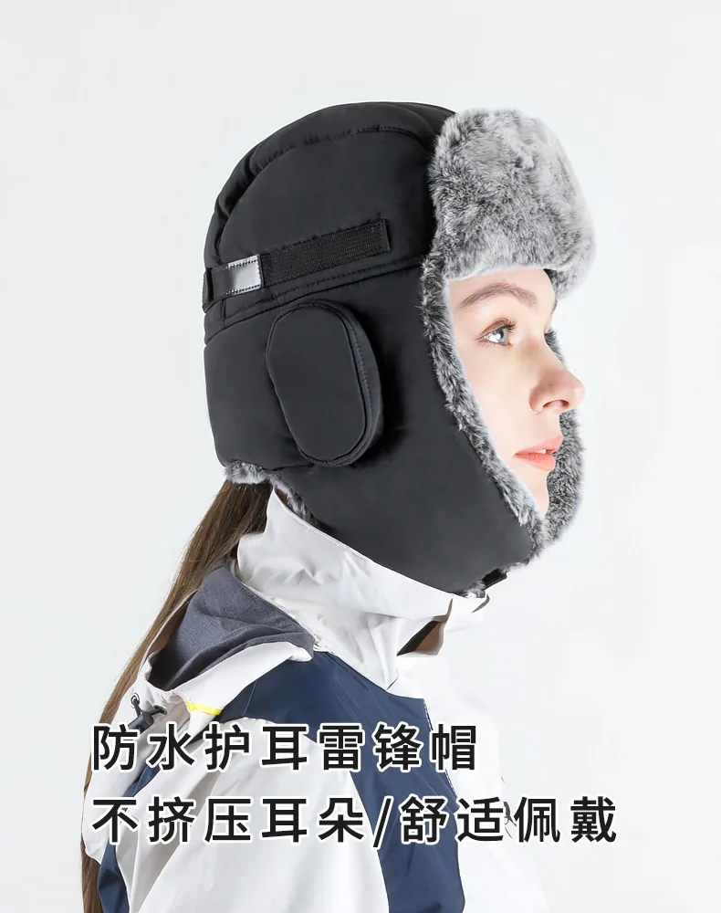 Ushanka-Gorra gruesa de terciopelo para hombre y mujer, gorro grueso para la oreja, impermeable, a prueba de viento, para pesca, escalada al aire libre, caza, esquí, Invierno