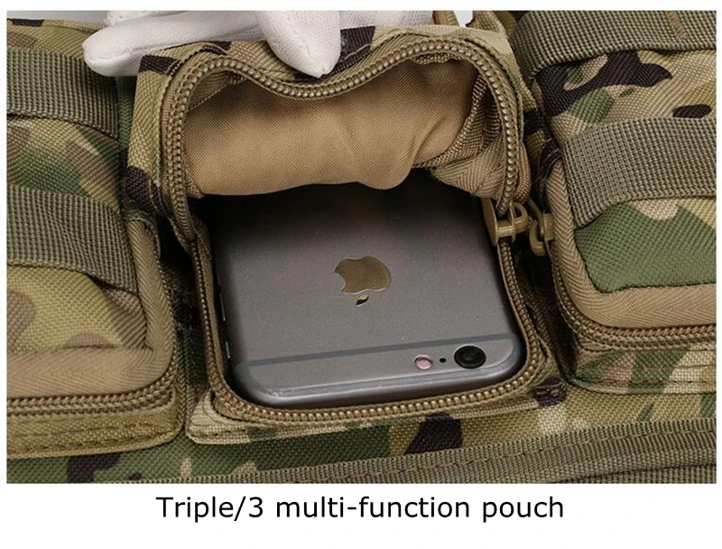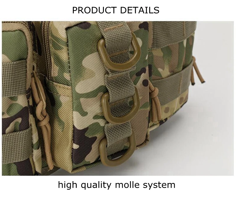 1. Dimensiones: 36x16x5cm, peso: 0,25 kg. 2. Material: hecho de tela de nailon 600D de estilo militar de alta intensidad, hebillas ABS de alta calidad, duraderas, resistentes al desgaste y al agua. 3. Estructura: 3 x bolsillos con cremallera separados para teléfono móvil, cámara pequeña, tirachinas y sus balas, 1 x ranura para linterna o tirachinas. 4. DISEÑO MOLLE: Sistema MOLLE en los bolsillos exteriores, puede cargar bolsillos adicionales, bolsillo para botella de agua, kits de accesorios y otros accesorios tácticos de utilidad/gadget. 5. Correa de cintura ajustable: se adapta a un tamaño de cintura de 20 "-42". Adecuado para uso diario, vacaciones, viajes, pesca, senderismo, camping, caza, tiro, etc.