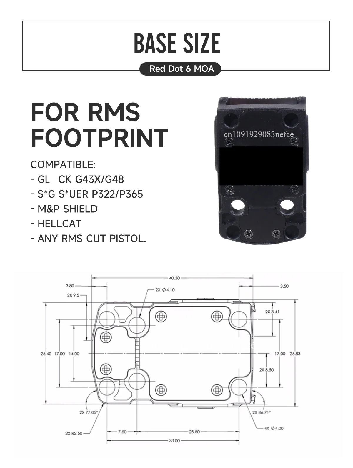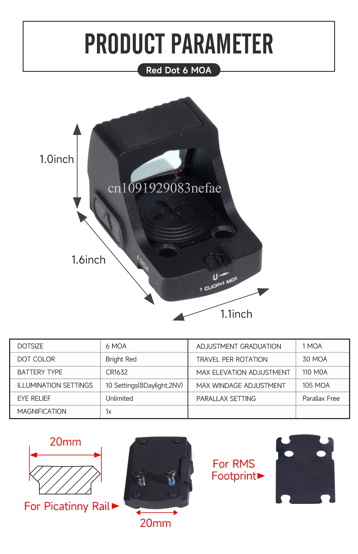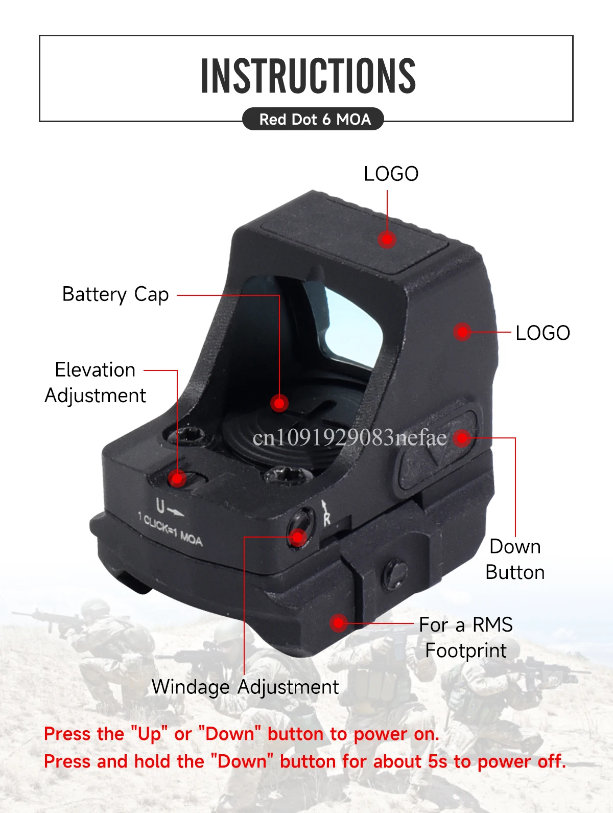 V **tex DF-CCW 6MOA Red Dot Sight Óptica táctica de caza compacta para pistola RMS Colimador de huellas, marcado 100% original