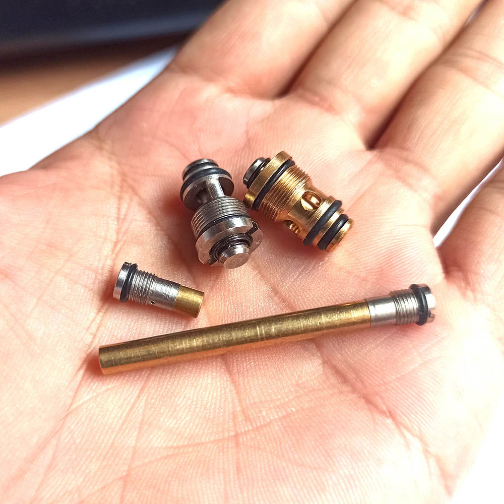 Segunda válvula que compro en esta tienda, pero la que recibí tiene el botón de liberación un poco más grande, por lo que cuesta que entre el mag y no se libera bien el aire. En la foto, la del mag a la izquierda fue la primera que compré, y la del mag de la derecha (encerrada en círculo) fue la que recibí. Triste que el mismo producto venga con tantas diferencias.