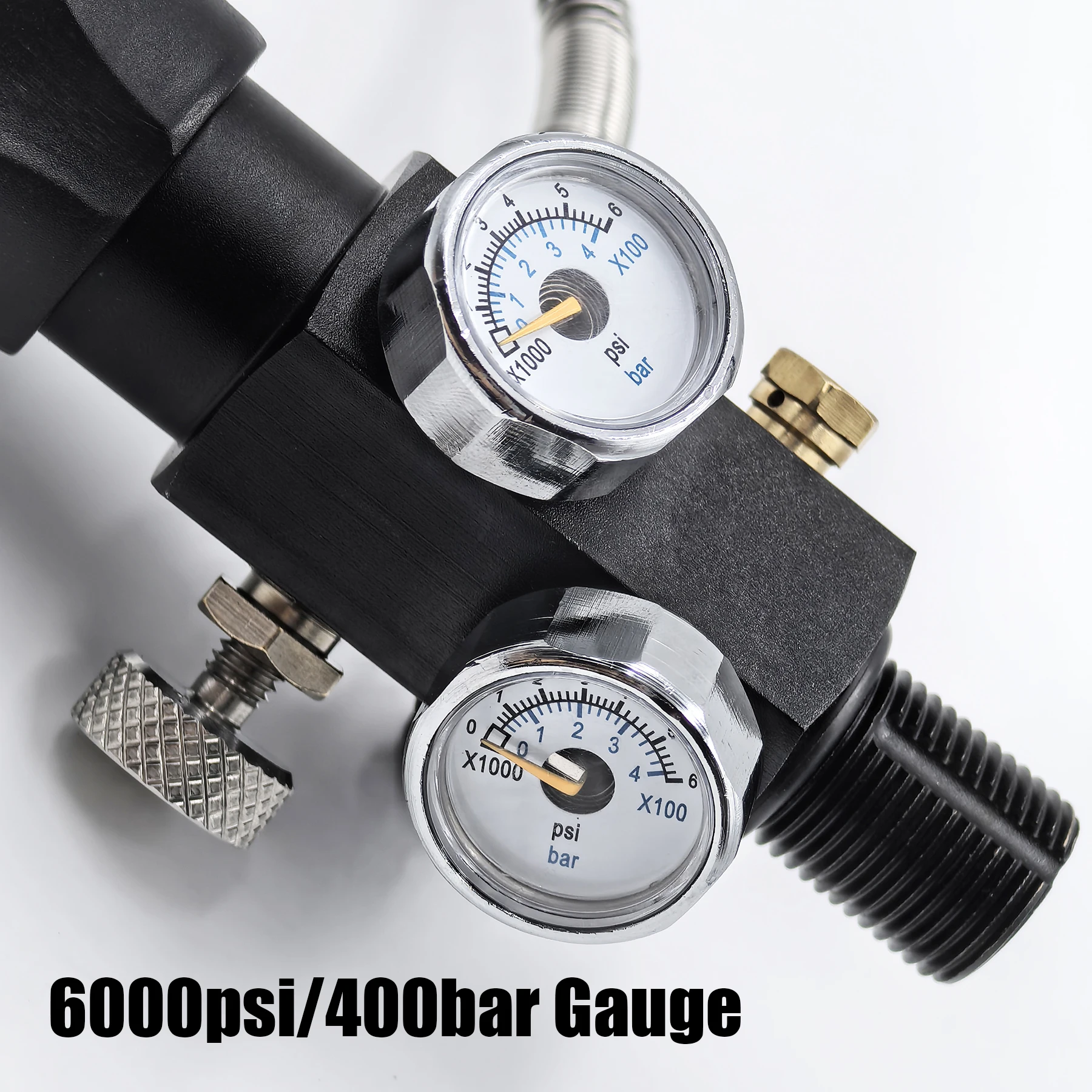 Válvula de carga de tanque de aire comprimido HPA Manguera de estación de llenado de buceo 20 pulgadas (50cm) con GaugeM18x1.5 o 5/8 "-18UNF 4500Psi/300Bar