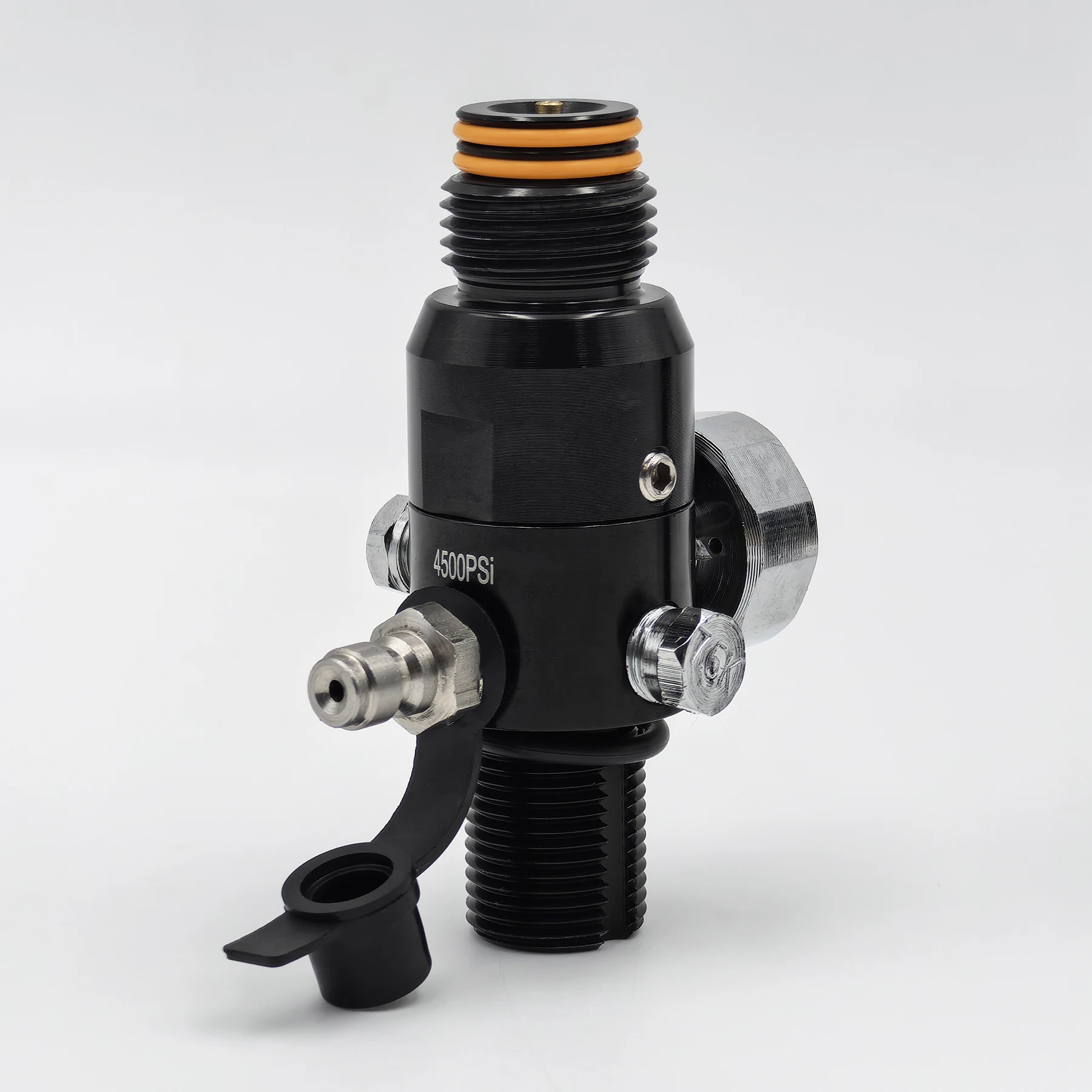 Válvula reguladora de tanque de aire cilíndrico HPA 4500psi, rosca de diseño de junta tórica doble de montaña M18 * 1,5 o 5/8-18UNF, salida de 800psi a 3000psi