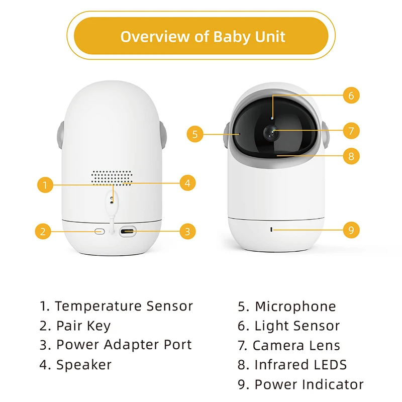 VB806 nuevo Monitor de bebé inalámbrico HD Control remoto cámara panorámica giratoria Monitor de bebé intercomunicador bidireccional No requiere WIFI