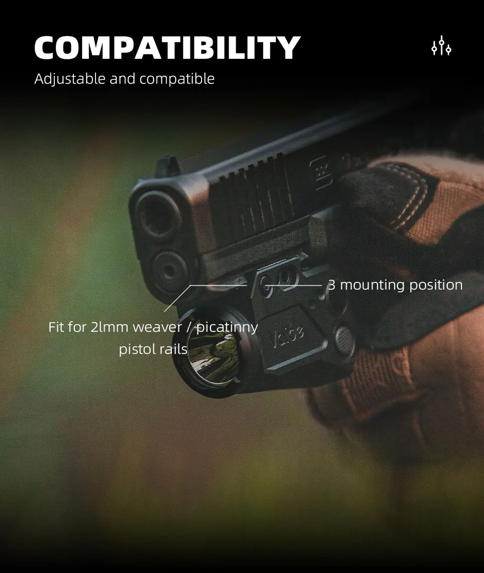 Combo de luz láser roja compacta táctica de perfil bajo para pistolas compactas.