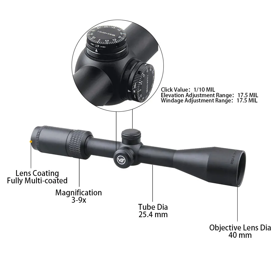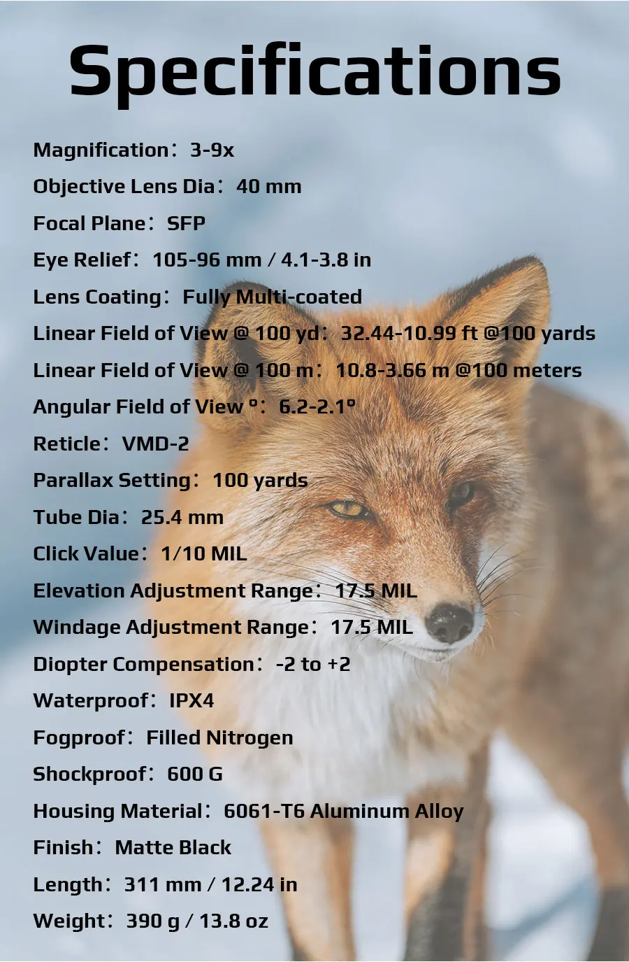 Alcance de rifle Matiz 3-9x40SFP MIL