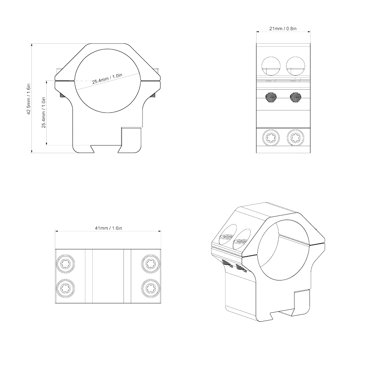 Easy and Quick-These Weaver/Dovetail Scope Rings are designed for easy and quick installation on 21mm Picatinny and Weaver rails, with connection to the SCACD-22 Screw-in Anti-Cantilever Device Mount.They have a low profile, making them ideal for use on rifles with a low comb height or short pull length.