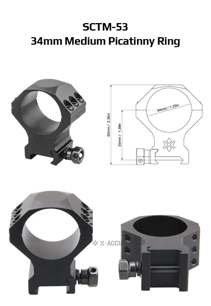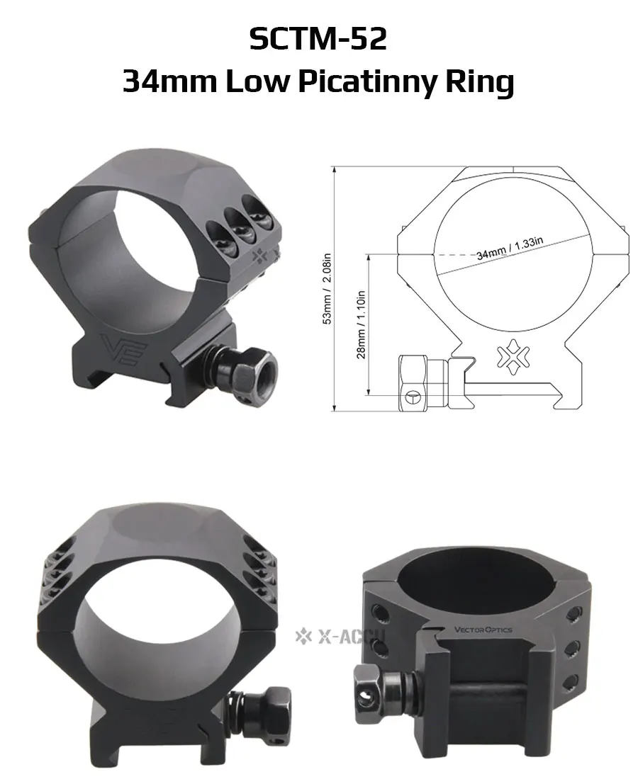 • 34mm de diámetro, un par, seis pernos por anillo, 1913 Picatinny,