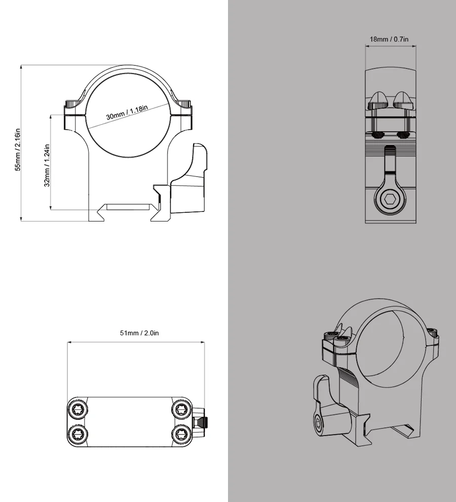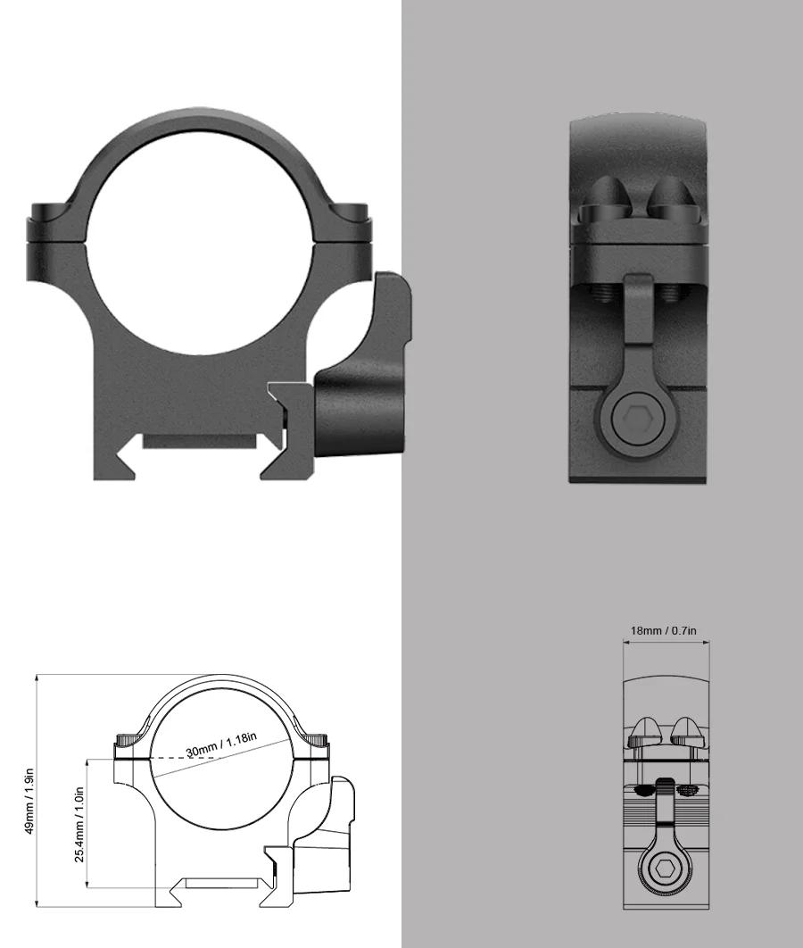 1. Anillos de alcance QD Weaver. 30mm de diámetro, 25,4mm 1in Altura central Perfil bajo.