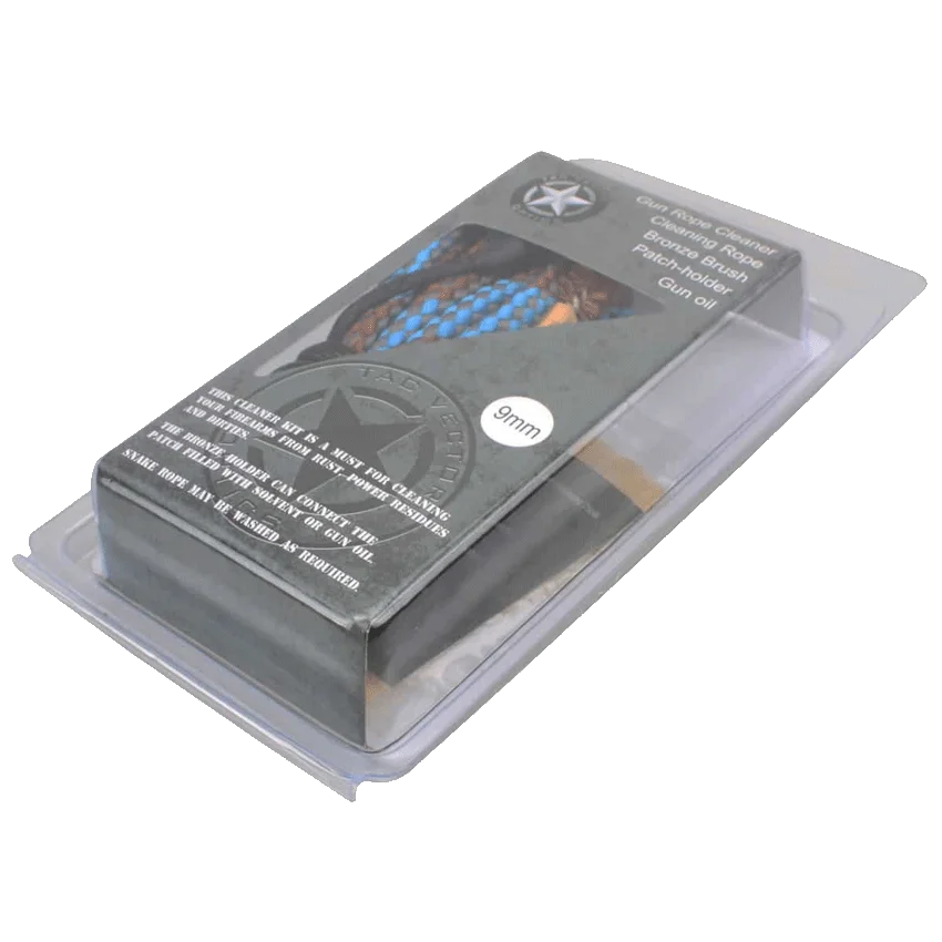 El kit incluye: eslinga con cepillo y soporte de bronce incorporado, cuerda y parche de aceite para pistola, paquete de blíster minorista