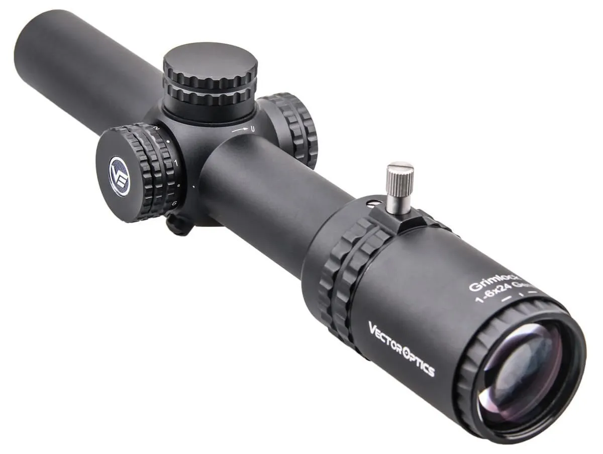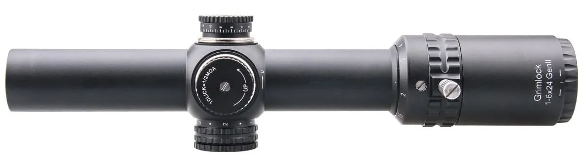 El Vector Optics GenII Grimlock 1-6x24 es una mira telescópica resistente de potencia variable con un retícula de segundo plano focal iluminada por LED que está diseñada para adaptarse a una batalla cercana (CQB) y a una marca de larga distancia.
