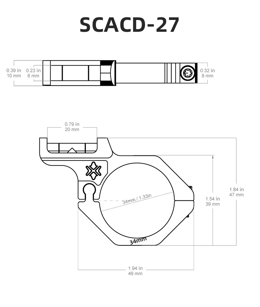 • Nivel de burbuja con diseño de perfil delgado, se adapta a visores de 34mm sin agregar volumen