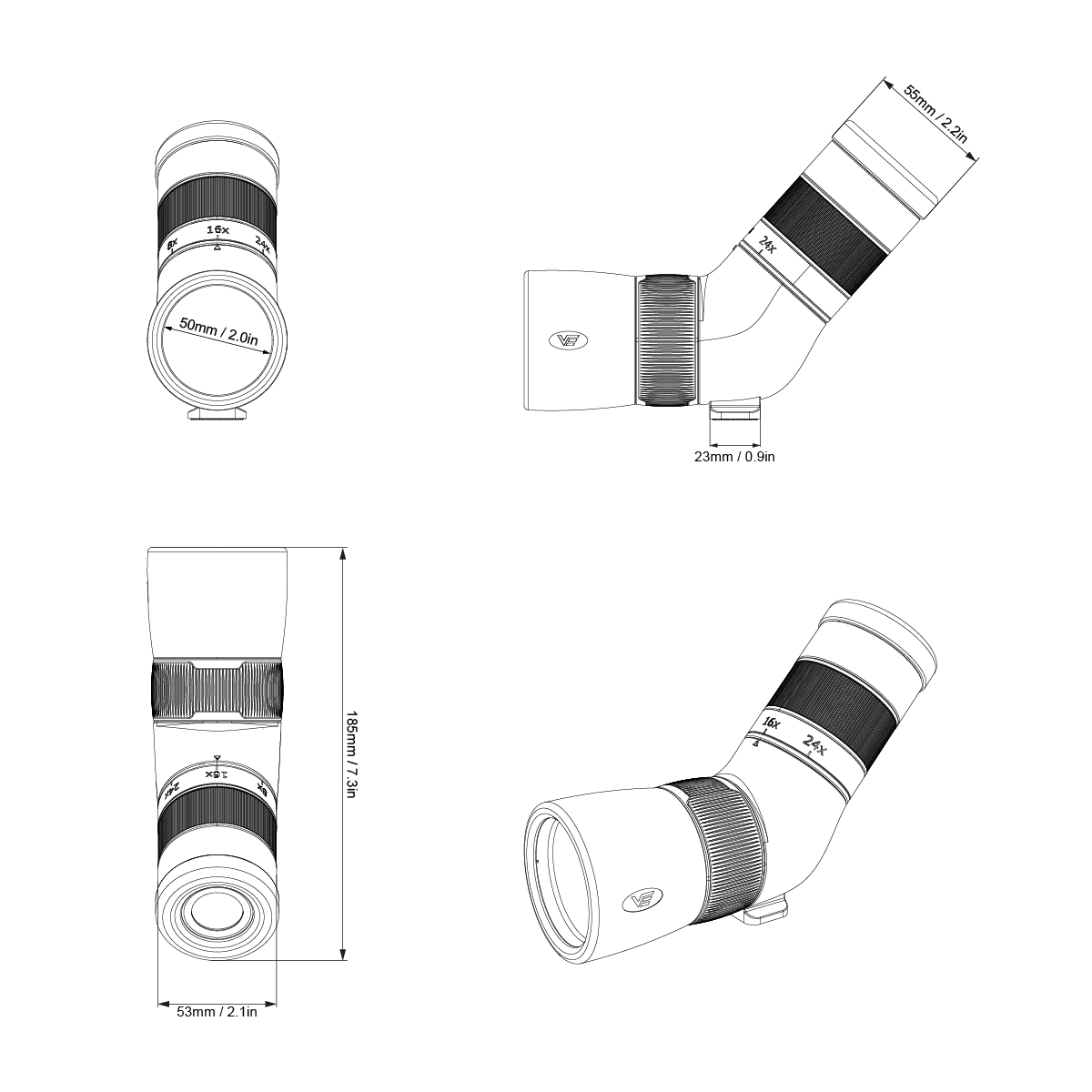 • Alcance ultra corto con trípode. Para tiro al blanco, birding y visualización de la vida silvestre.