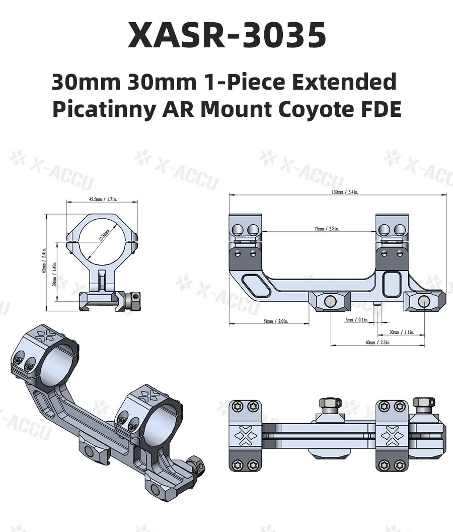 30mm 1 pieza Extended Picatinny AR Mount Coyote FDE