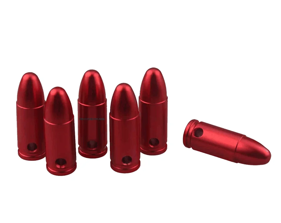Tiene la misma función que una rotonda de chupete, pero diferente de lo que generalmente se elabora un chupete a partir de un cartucho real con su propulsor y imprimación eliminados (aún tiene el proyectil y la carcasa).
