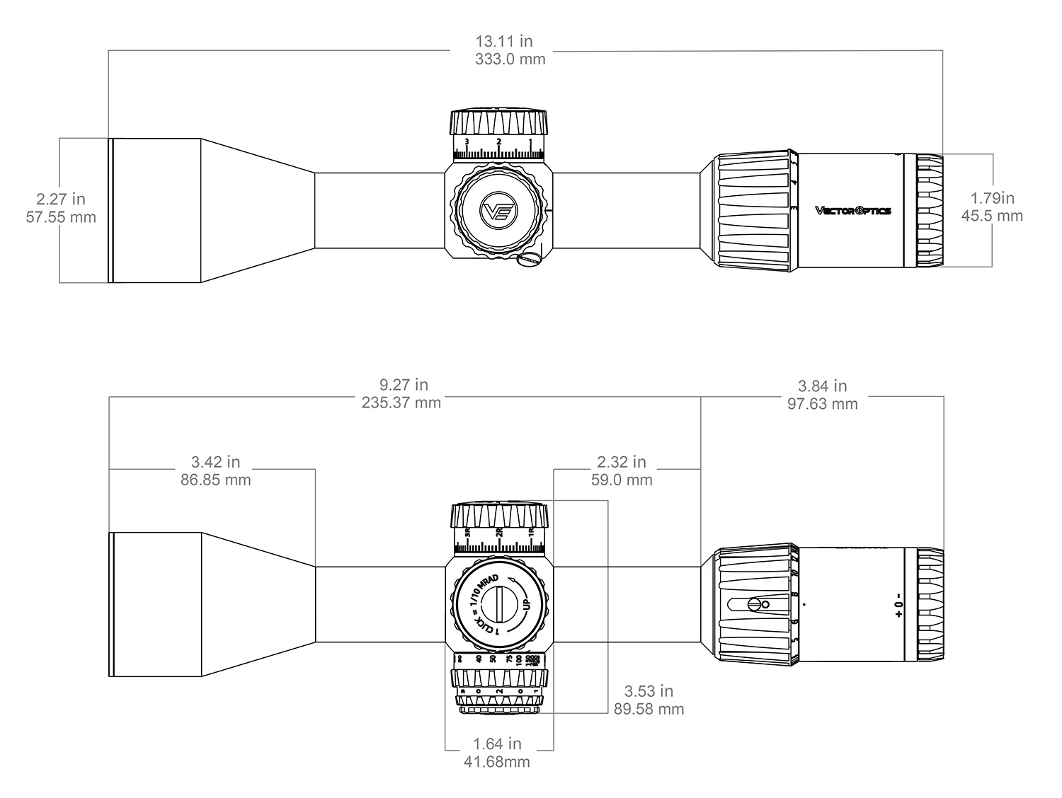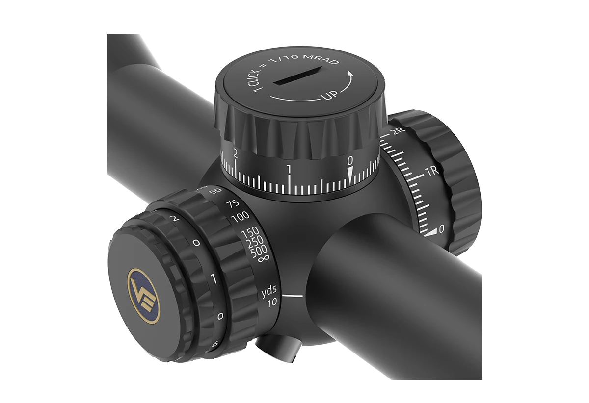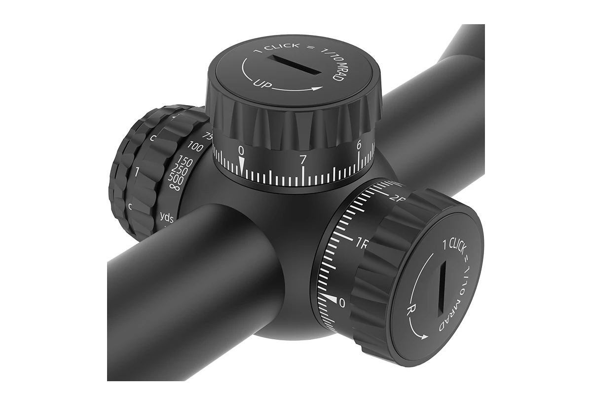 · El diámetro del tubo grande de 30 mm aumenta el rango de elevación a 29 MIL, 1/10 MIL, valor de clic para un ajuste preciso