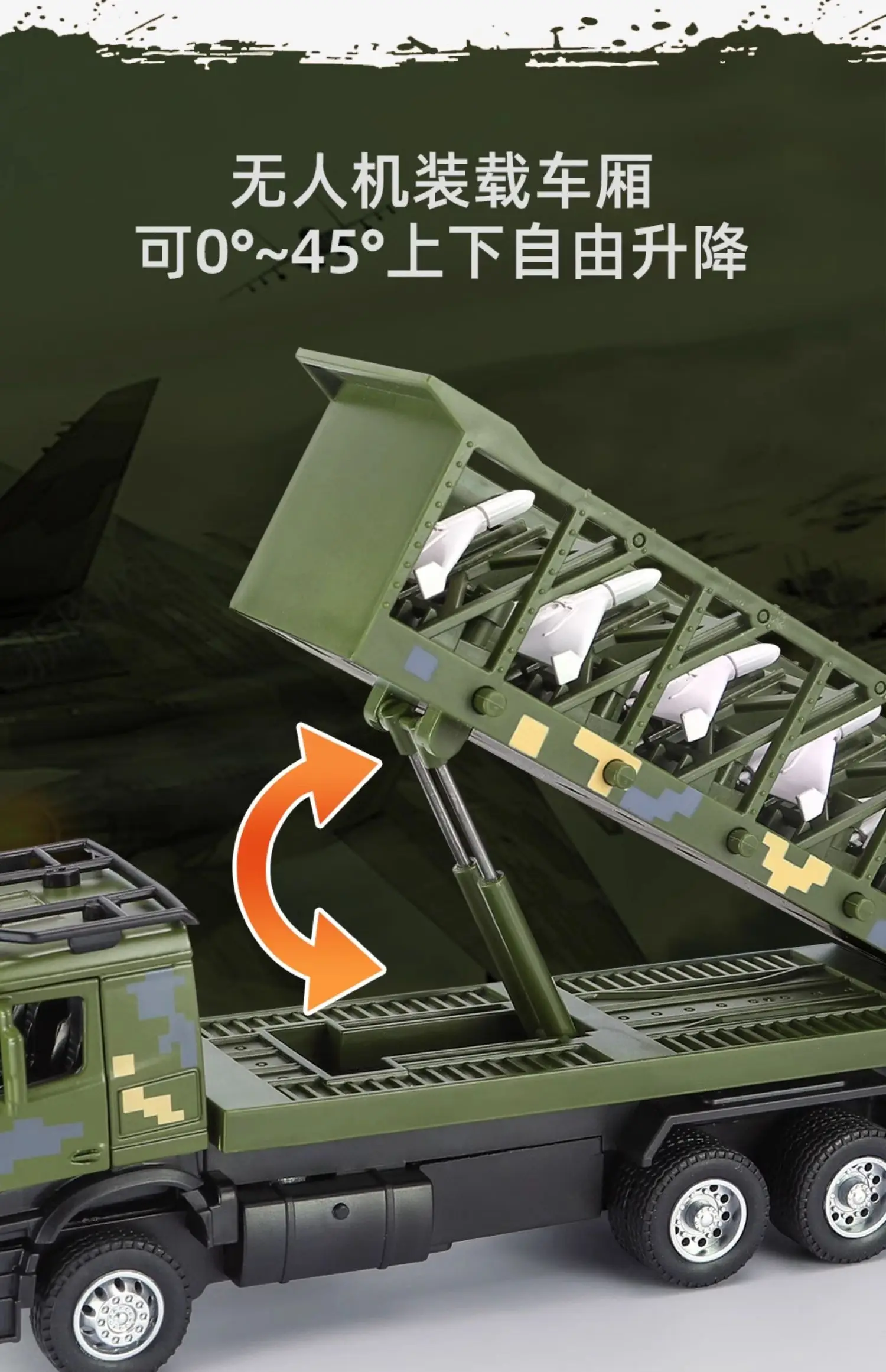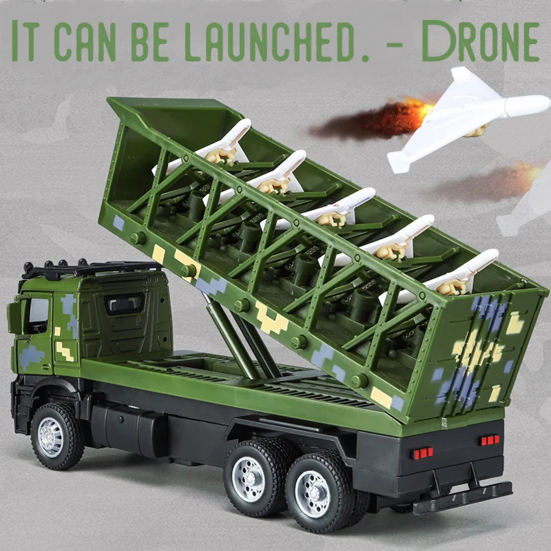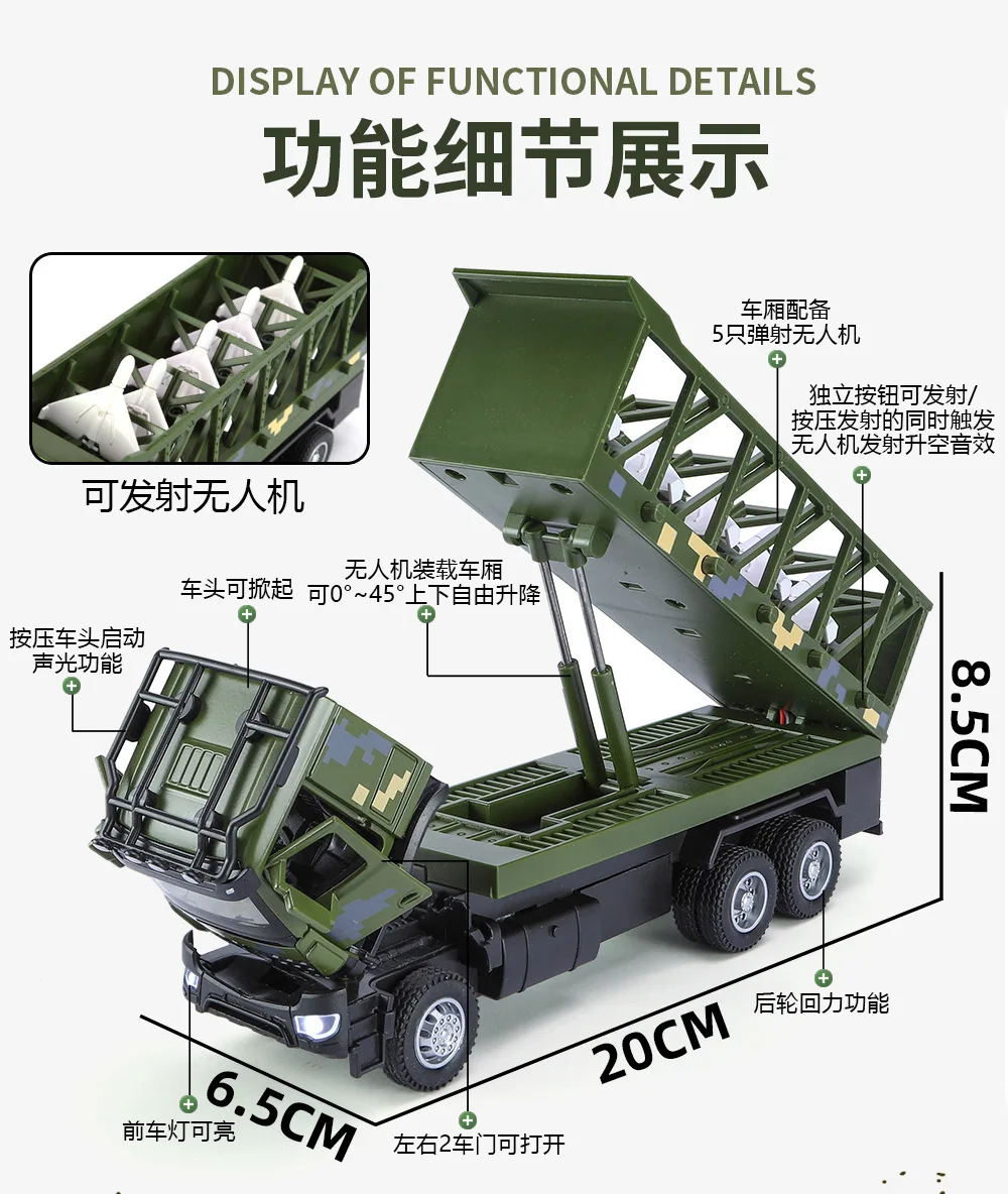 Vehículo de lanzamiento de drones, modelo militar de aleación, simulación de sonido y luz, juguetes para niños de 3 a 6 años, carro misil