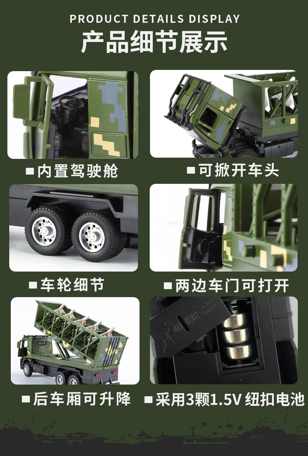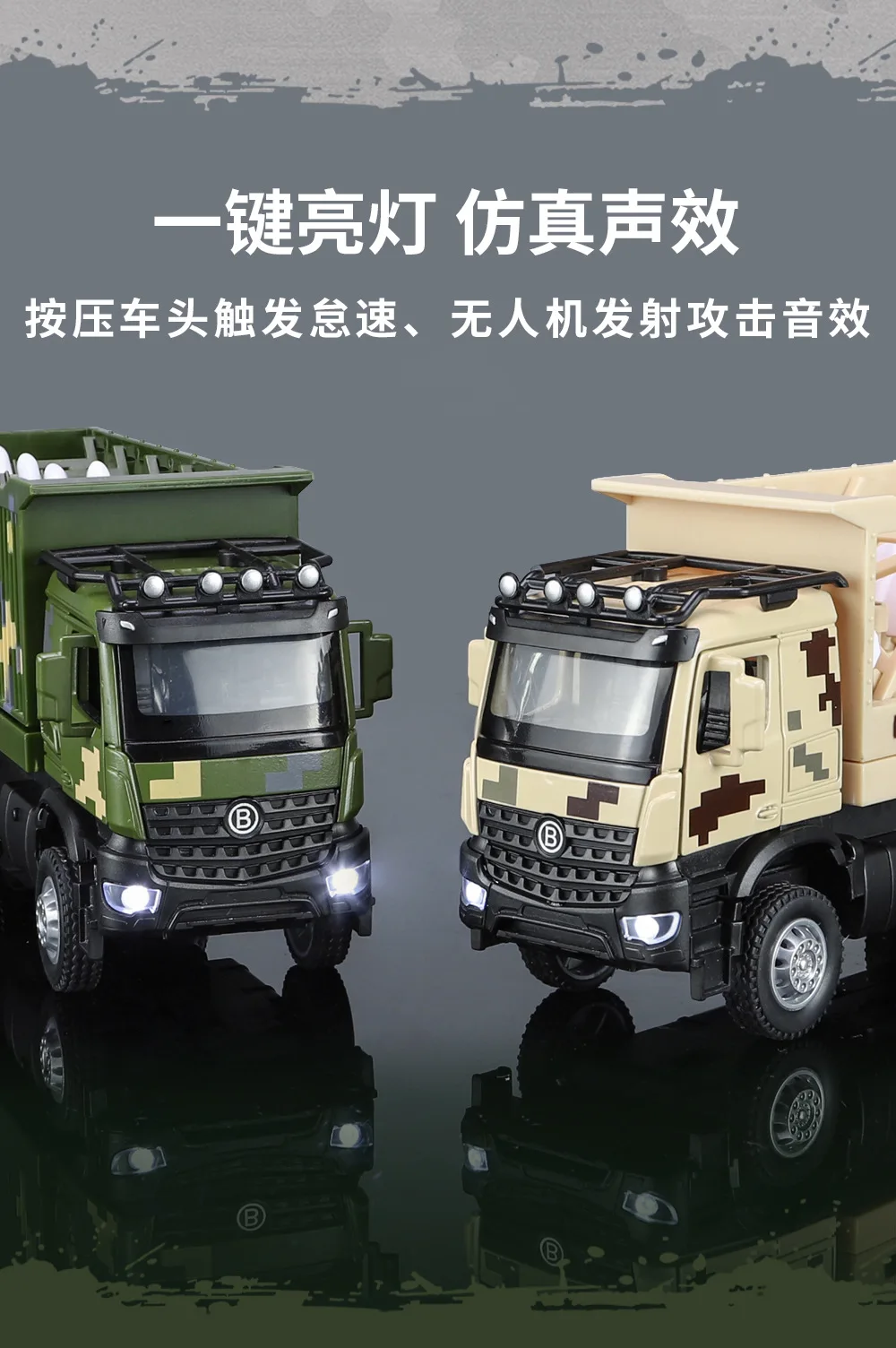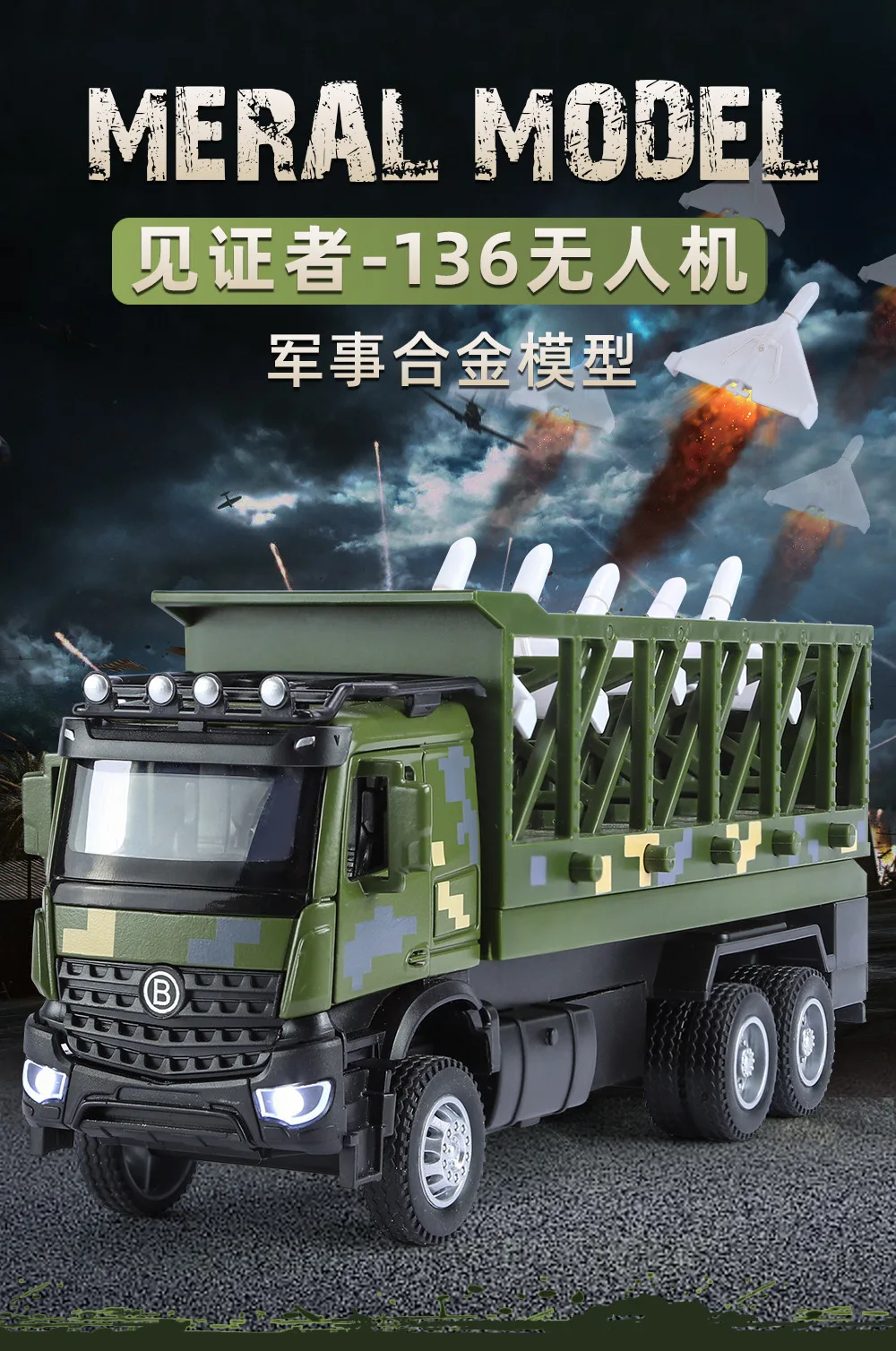 Vehículo de lanzamiento de drones, modelo militar de aleación, simulación de sonido y luz, juguetes para niños de 3 a 6 años, carro misil