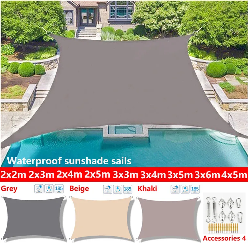 Toldo de vela impermeable gris 300D, toldo anti uv, toldo ultraligero para jardín de piscina, vela de sombra, toldo de camping