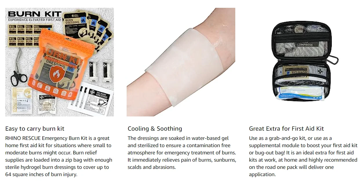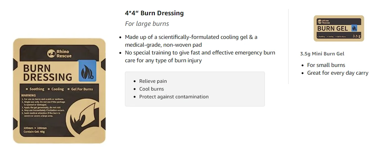 Con los apósitos para quemaduras RHINO RESCUE, no se necesita ningún entrenamiento especial para brindar un cuidado de quemaduras de emergencia rápido y eficaz para cualquier tipo de lesión por quemaduras.Los apósitos estériles son fáciles de transportar, almacenar y utilizar.Estos apósitos también se pueden aplicar directamente sobre la combustión sin necesidad de enfriar previamente antes de aplicar el apósito.