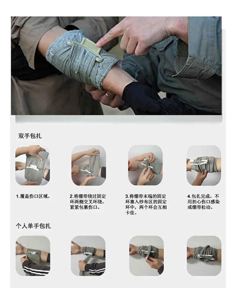 Puede utilizarse con fines militares o civiles.Una parte integral de cada botiquín de primeros auxilios en casa o en el trabajo.