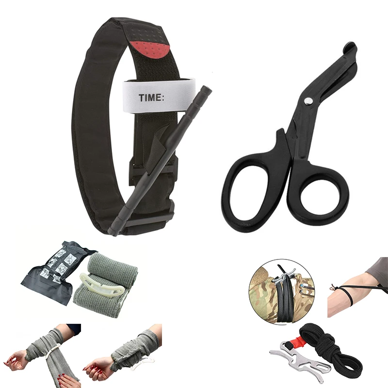 Este torniquete y tijeras están hechos de buena calidad y están diseñados para uso al aire libre o de emergencia en casa o de viaje. Son pequeños y ligeros para llevar, estos artículos son muy vitales para acampar, caminar, cazar, aventuras en motocicleta o de supervivencia, o para almacenar en cualquier kit de emergencia para el hogar o el automóvil