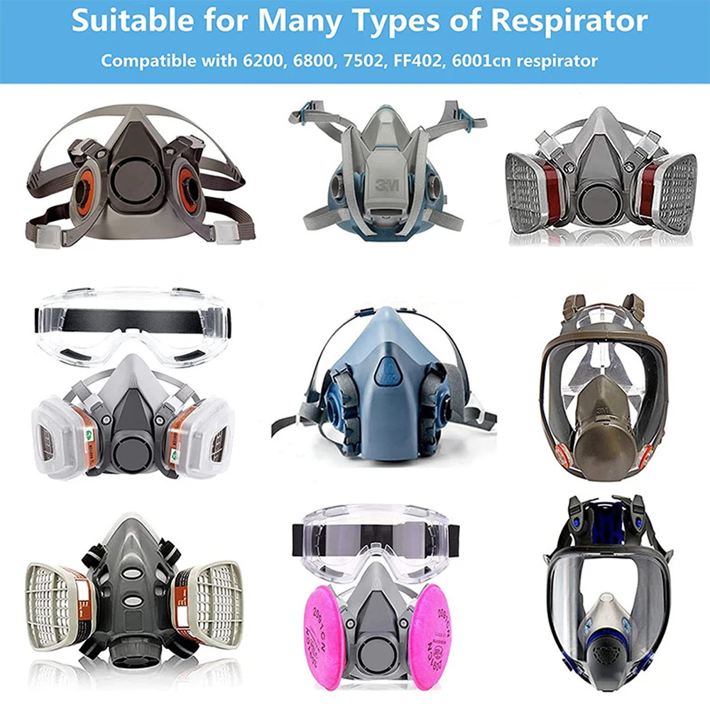 Generalmente utilizado con retenedor de filtro 501 y 6001,6002,6003,6004,etc. Cartuchos para mascarilla de la serie 3M 6200/7502/6800.