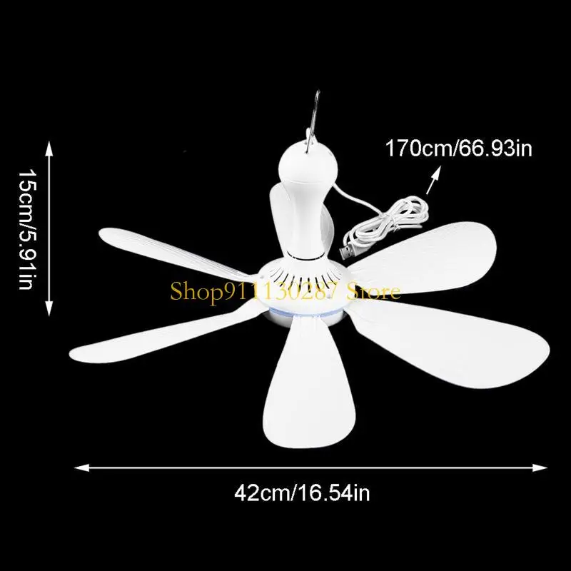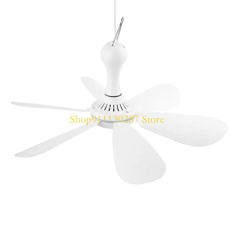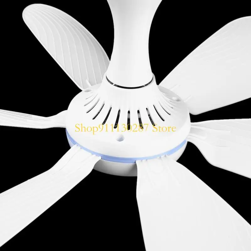 Pequeño ventilador de techo ideal para el verano caluroso y los días sin viento, también para dormitorios o tiendas de campaña al aire libre.