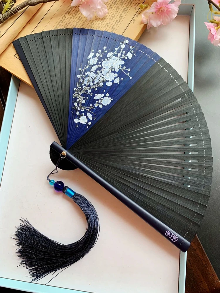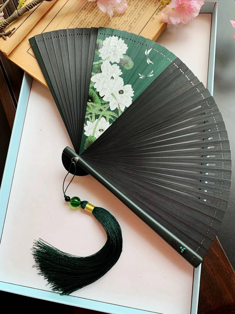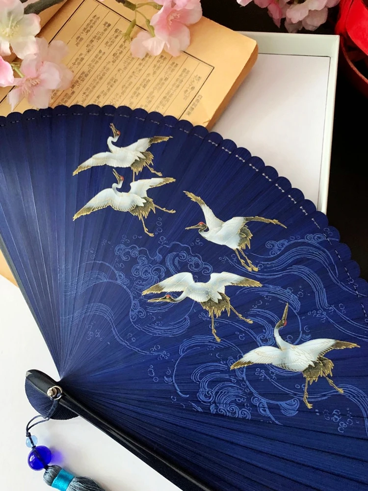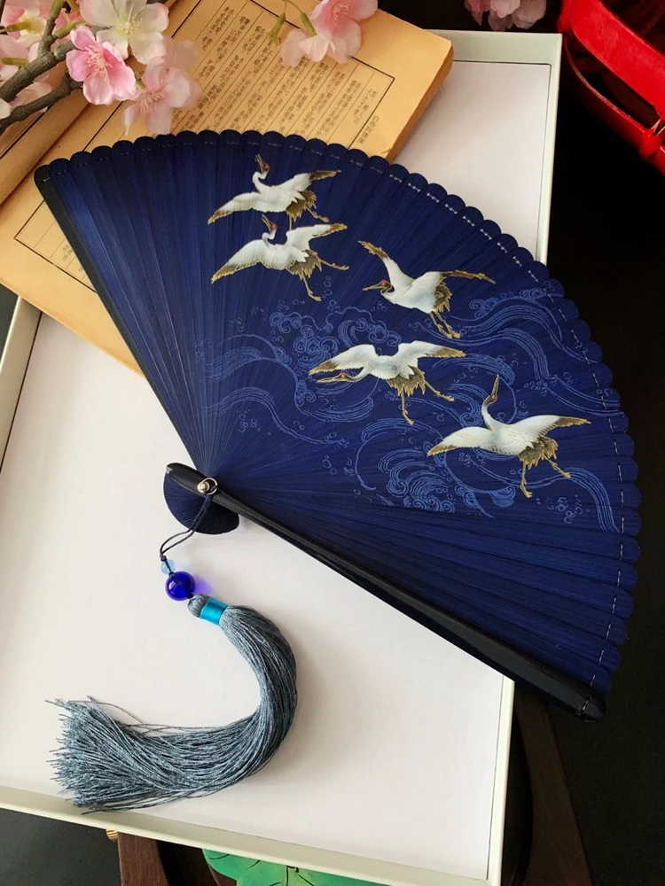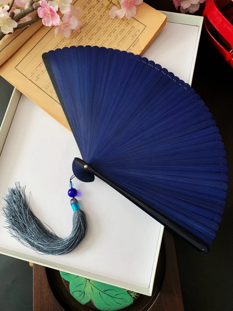 Ventilador plegable de viento chino para mujer, Mini ventilador plegable portátil clásico, retro, color puro