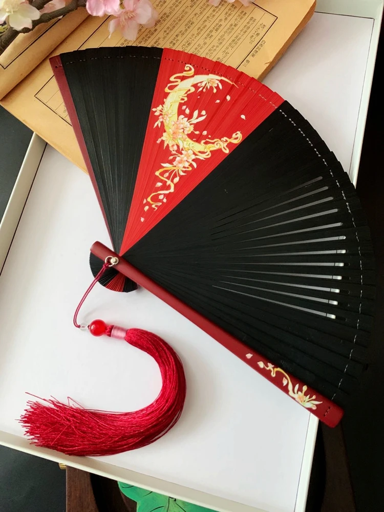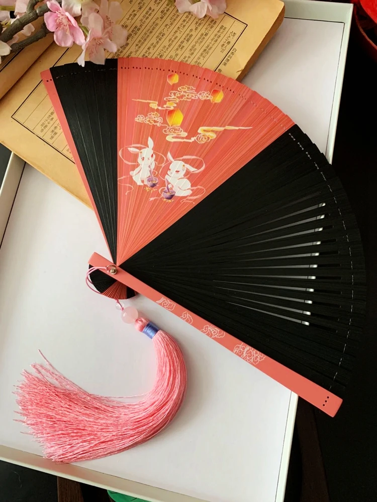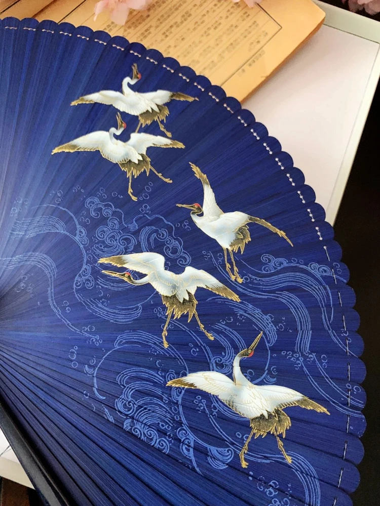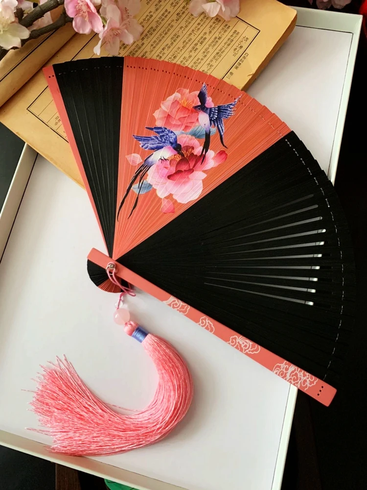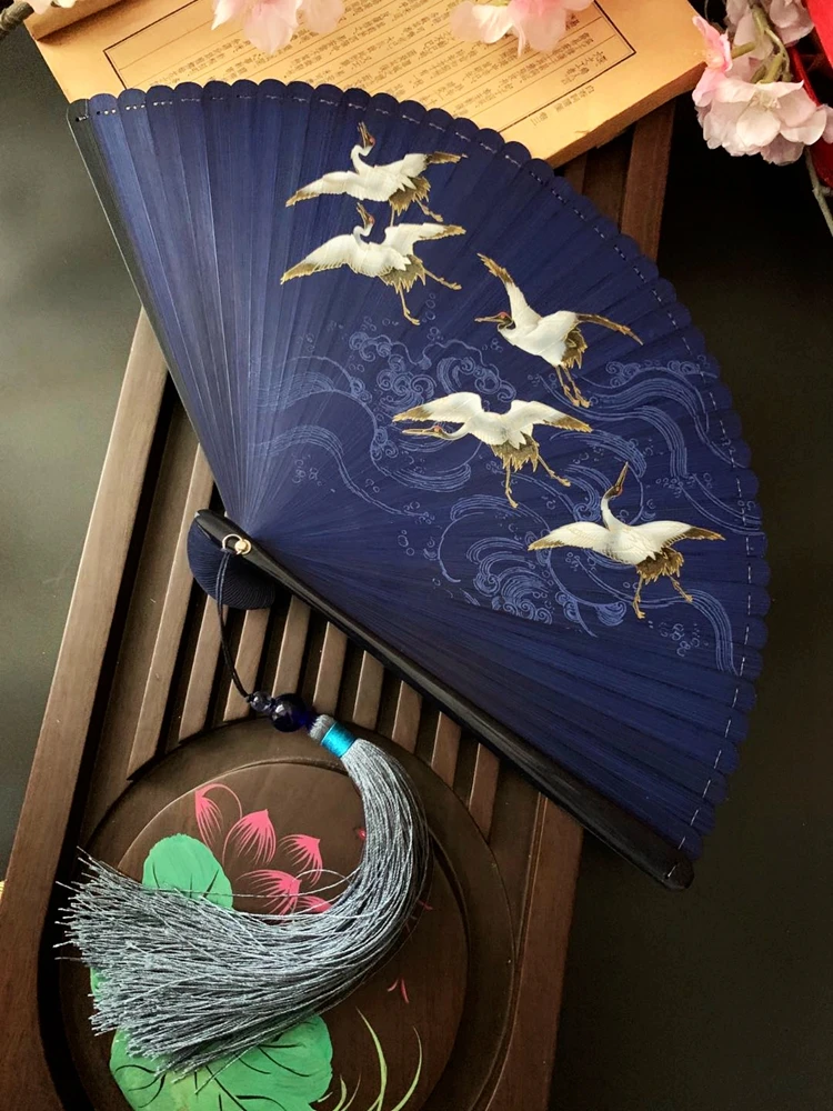 Ventilador plegable de viento chino para mujer, Mini ventilador plegable portátil clásico, retro, color puro