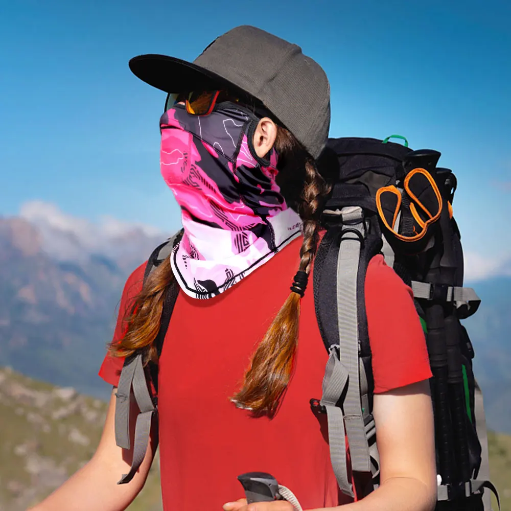 La cubierta facial está hecha de seda helada. Es más suave que el algodón, transpirable y absorbente del sudor. En el caluroso verano, cuando use esta cubierta facial, su cara se sentirá muy fresca y lo mantendrá seco.