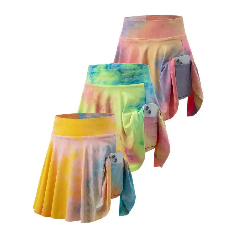 Con un elegante diseño vibrante tie-dye con una estructura de falda de dos piezas sintética.