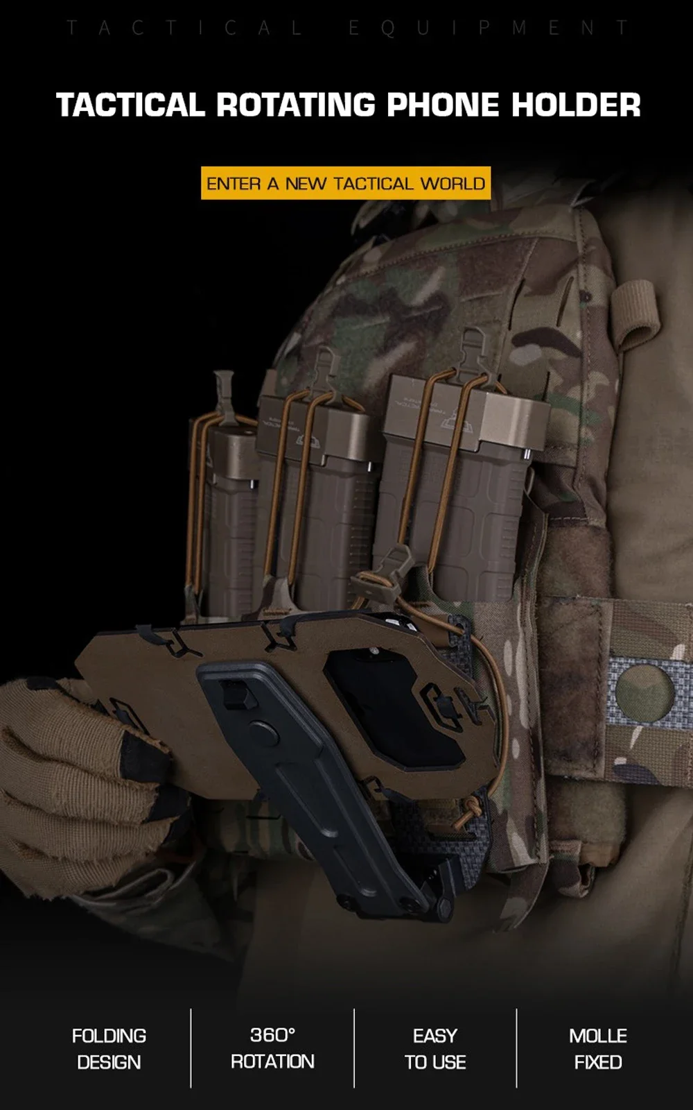 Viajes de aventura para acampar al aire libre 90 ° Soporte de navegación móvil giratorio con instalación vertical Molle